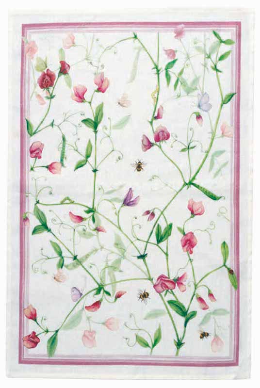 Tessitura Toscana Telerie is a wonderful linen company that makes all their products in Tuscany, Italy. Their kitchen towels are so pretty they could be wall art but strong enough for regular use. Petit Pois Pink is no exception. The design has sweet spring peas in delicate pods and their blooms all in pretty shades of pinks, violets and greens with a coordinating border. If you look closely you will see tiny inhabitants. Use in your kitchen or place in your powder room as they are perfect as a hand towel. 55% linen 45% cotton, they're perfect for lint-free drying. Made in Italy.