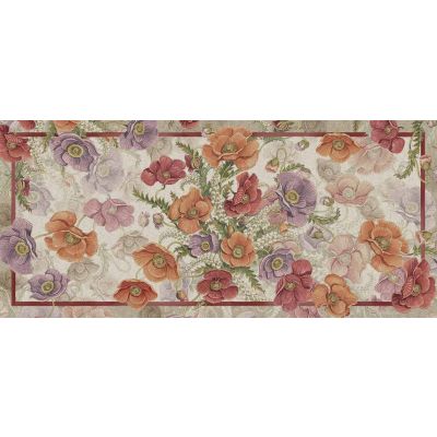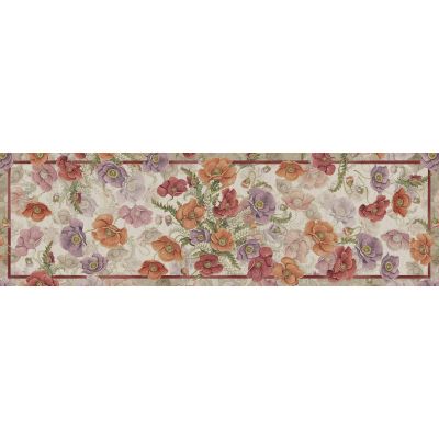 Tip Tapp Rugs by Tessitura Toscana Telerie are great indoor/outdoor rugs. You can spruce up any space with these rugs. Whether it is your kitchen, entryway, bathroom or porch they will bring some color and flair. Poppy's design has stunning poppy flowers in beautifully muted jewel tones. Due to its small grips on the bottom side your rug will be stable and be non-slip. Machine washable. Rugs come in a recycled polyester case. 80% recycled polyester 20% polyester.