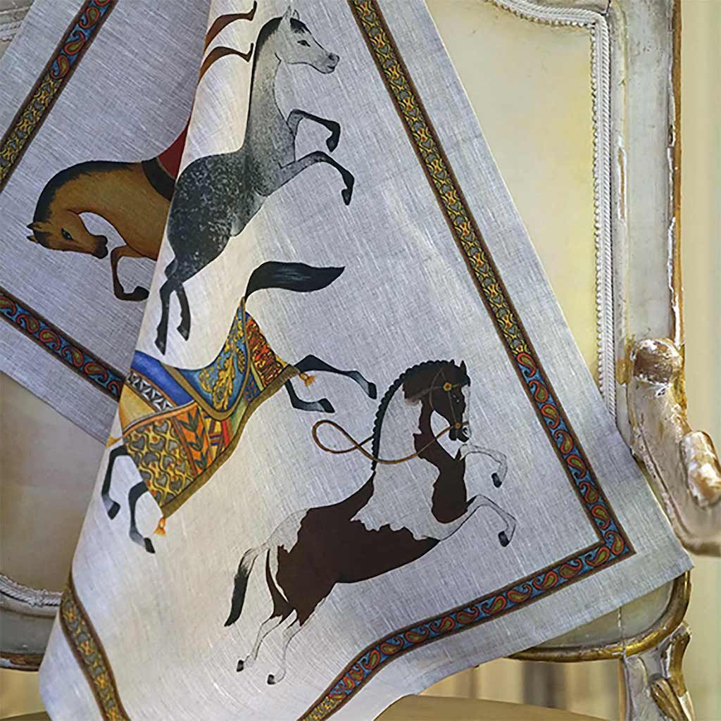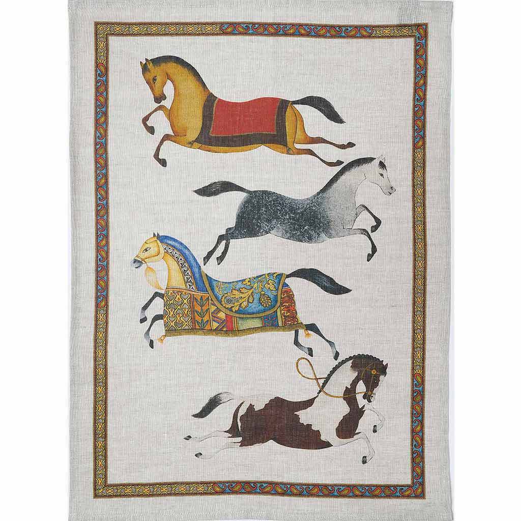 Tessitura Toscana Telerie is a wonderful linen company that makes all their products in Tuscany, Italy. Their kitchen towels are so pretty they could be wall art but strong enough for regular use. Barnum Cavalli is no exception. Four stunning horses grace this tea towel in rich colors. Use in your kitchen or place in your powder room as they are perfect as a hand towel. 100% linen, they're perfect for lint-free drying. Made in Italy.