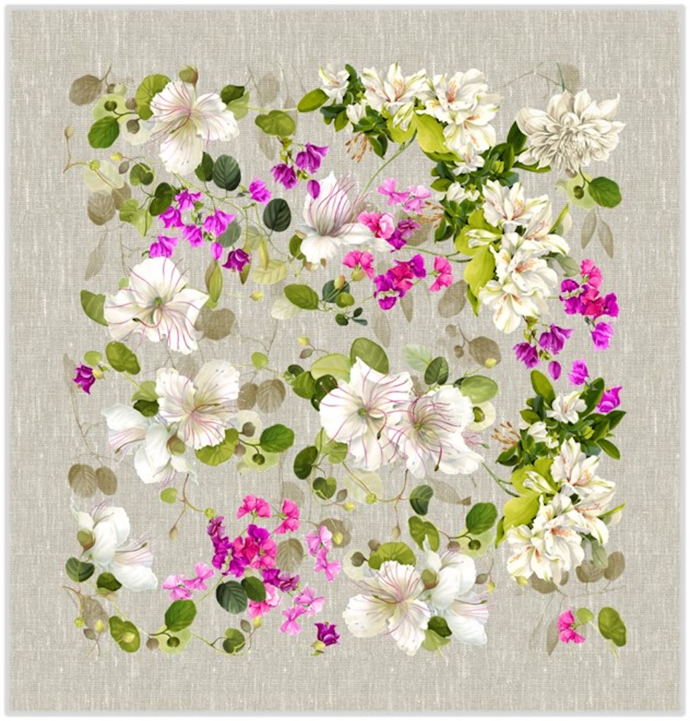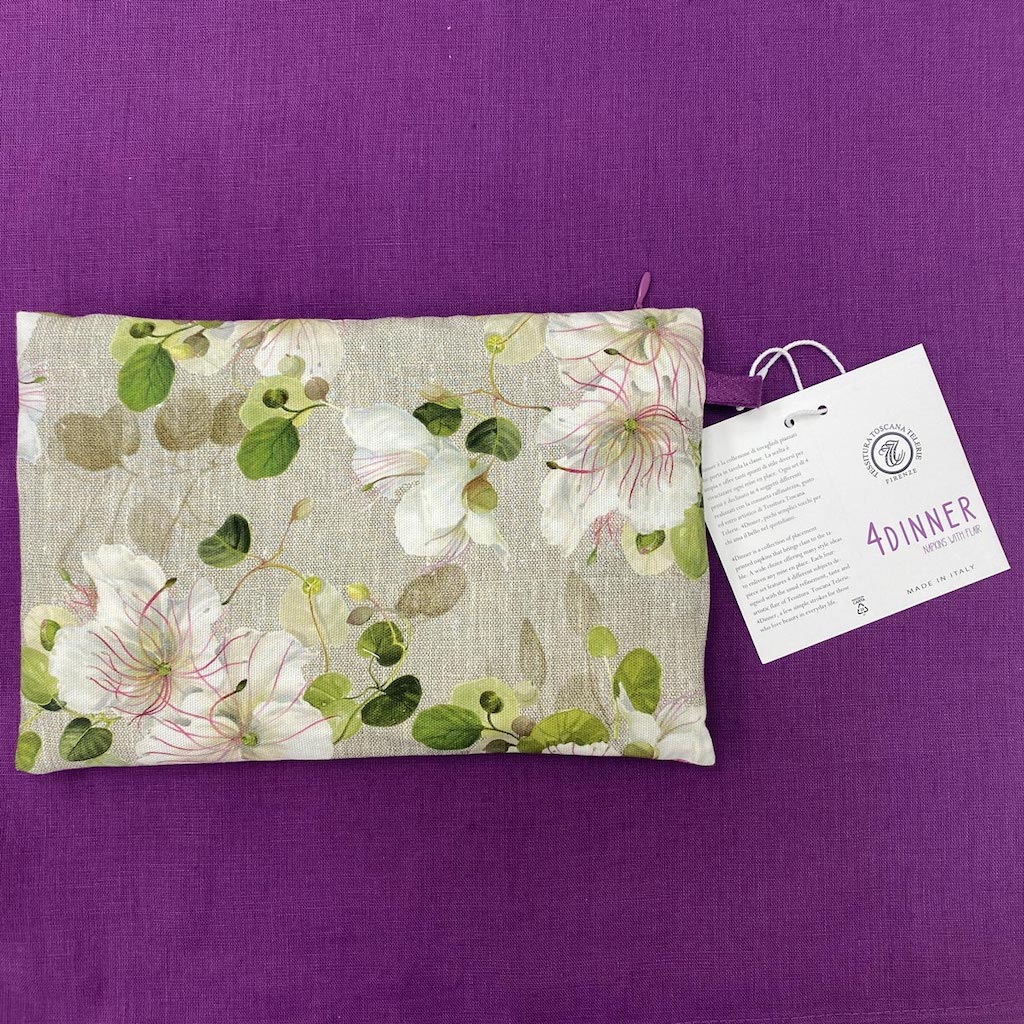 Tessitura Toscana Telerie Blossom Dinner Napkins are tasteful and refined. Each four-piece set features 4 different subjects designed with the usual refinement, taste and artistic flair of Tessitura Toscana Telerie. In this set you will find beautiful blooms. These napkins are for those who love beauty in everyday life. Simple hem with mitered corners. 100% cotton. Made in Italy.
