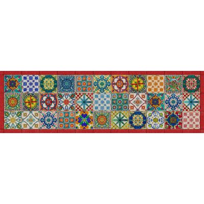 Tip Tapp Rugs by Tessitura Toscana Telerie are great indoor/outdoor rugs. You can spruce up any space with these rugs. Whether it is your kitchen, entryway, bathroom or porch they will bring some color and flair. Camastra is a fun geometric pattern that comprises of gorgeous Italian tiles. Due to its small grips on the bottom side your rug will be stable and be non-slip. Machine washable. Rugs come in a recycled polyester case. 80% recycled polyester 20% polyester.