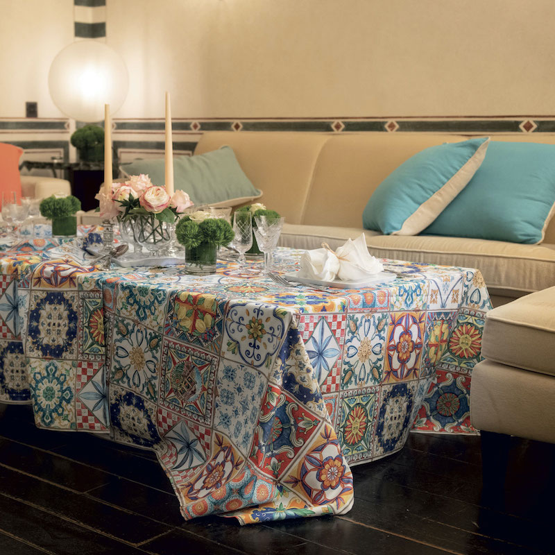 Tessitura Toscana Telerie is a wonderful linen company that produces their designs in Tuscany, Italy. Camastra is a fun geometric pattern that comprises of gorgeous Italian tiles. Works with formal china or can be scaled down to a casual look.