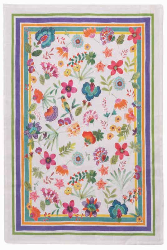 Tessitura Toscana Telerie is a wonderful linen company that makes all their products in Tuscany, Italy. Their kitchen towels are so pretty they could be wall art but strong enough for regular use. Carel Green is no exception. The design has a delightful display of flowers in bright colors with a several coordinating rectangles that make an impressive border. Use in your kitchen or place in your powder room as they are perfect as a hand towel. 100% linen, they're perfect for lint-free drying. Made in Italy.
