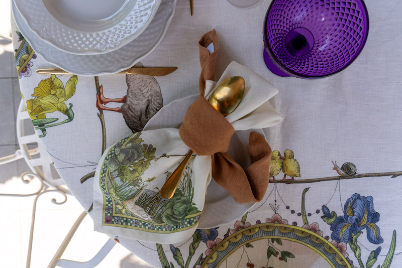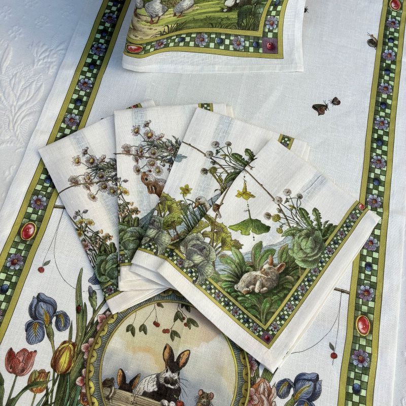 Crafted by Tessitura Toscana Telerie, these Italian linen dinner napkins showcase four distinct spring-inspired designs featuring charming woodland creatures. Each set delivers the brand's signature blend of artistic sophistication and refined aesthetics, ideal for Easter entertaining or elevating springtime dining. Constructed from 100% pure linen with precisely mitered corners and a clean hem finish, these napkins combine durability with understated elegance. Perfect for those who appreciate quality textiles and thoughtful design details in their home.