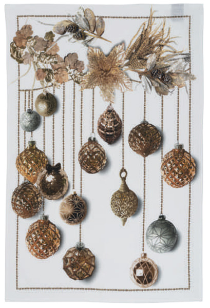 The Glitter tea towel features Christmas ornaments hanging from strings of beads and adorned with pine cones and gold and silver leaves. This tea towel is available in two color ways. Tessitura Toscana Telerie is a wonderful linen company that makes all their products in Tuscany, Italy. Their kitchen towels are so pretty they could be wall art but strong enough for regular use. Perfect as a hand towel and they're perfect for lint-free drying. 100% linen.