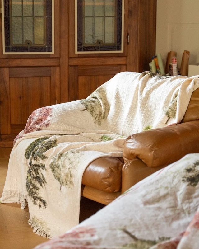 Tessitura Toscana Telerie is a wonderful linen company that makes all their products in Tuscany, Italy. Their throws are a joy to look at and so soft to the touch. Greeson's design consists of an impressive weeping willow and a spectacular fiery red tree. This throw will be a perfect pop of color for any room. 100% stone washed cotton.