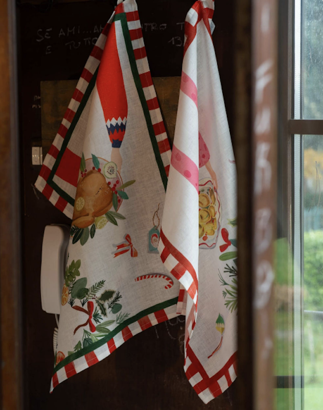 Tessitura Toscana Telerie is a wonderful linen company that makes all their products in Tuscany, Italy. Hand On Xmas Tortellini is designed to showcase fabulous and festive pasta Dinner. Their kitchen towels are so pretty they could be wall art but strong enough for regular use. Use in your kitchen or place in your powder room as they are perfect as a hand towel. 55% linen and 45% cotton. Made in Italy.