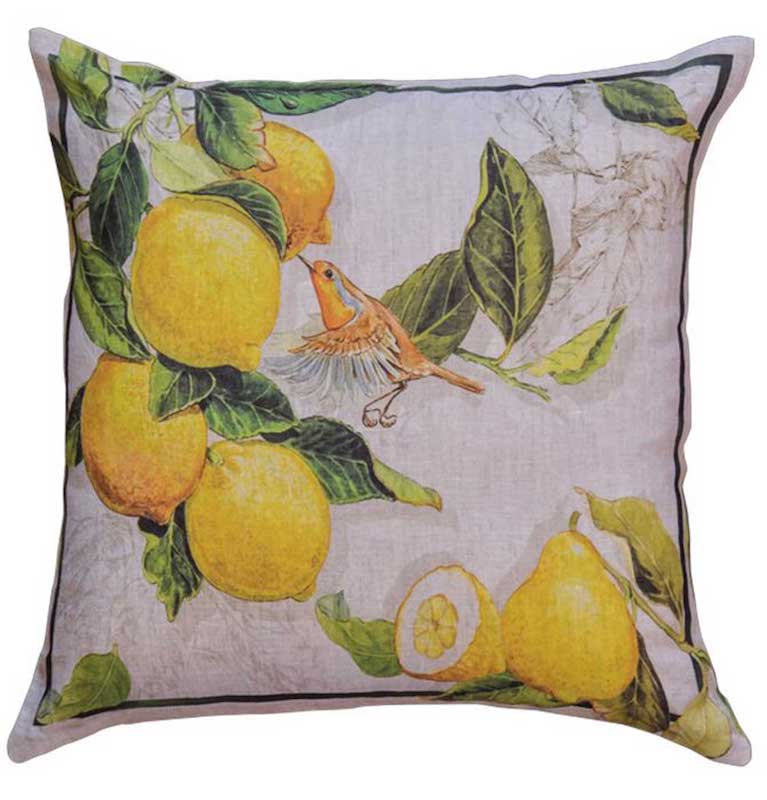 Tessitura Toscana Telerie is a wonderful linen company that designs and manufacturers all their products in Tuscany, Italy. Their decorative pillows are just stunning. Limoncello is an Italian lemon liqueur mainly produced in Southern Italy, especially in the region around the Gulf of Naples, the Sorrentine Peninsula and the coast of Amalfi, and islands of Procida, Ischia, and Capri. The plump lemons and sweet birds really make this a pleasurable sight. Sure to bring warm feelings of summer and a good dose of happy to all your guests. 100% linen.