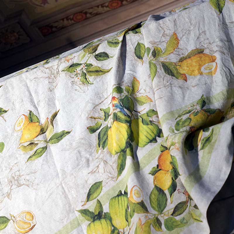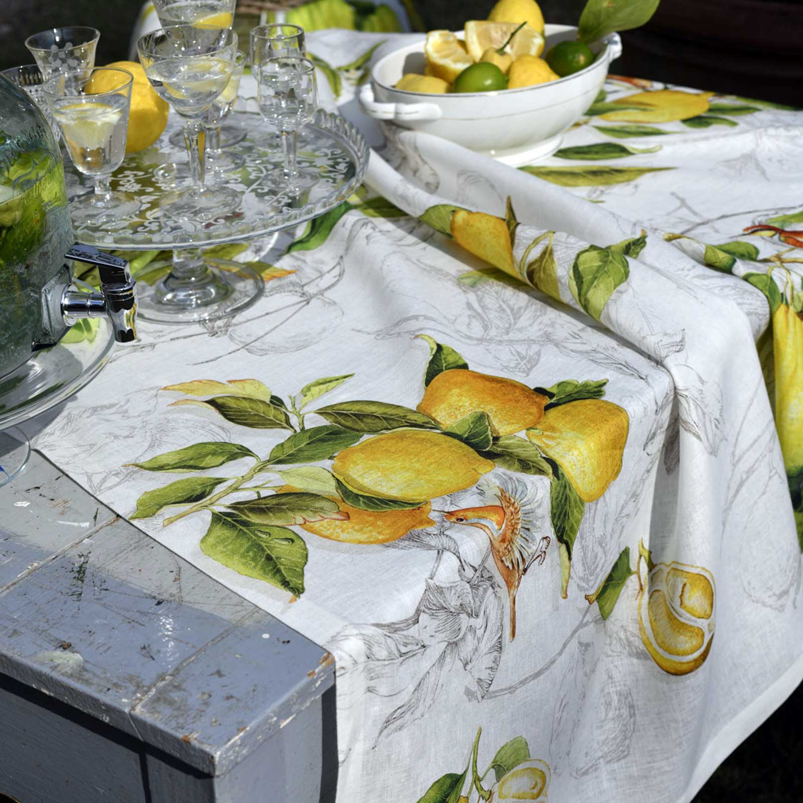 Tessitura Toscana Telerie is a wonderful linen company that makes all their products in Tuscany, Italy. Their tablecloths and runners are just stunning. Named after one of Italy's famous drink. Limoncello is an Italian lemon liqueur mainly produced in Southern Italy, especially in the region around the Gulf of Naples, the Sorrentine Peninsula and the coast of Amalfi, and islands of Procida, Ischia, and Capri. It is like Sunshine on your table linens. Sure to bring warm feelings of summer and a good dose of happy to all your guests. 100% linen.
