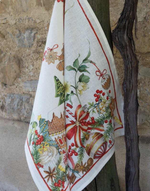 Tessitura Toscana Telerie is a wonderful linen company that makes all their products in Tuscany, Italy. Marzapepe Casetta is designed to showcase the colorful and festive gingerbread creations. Their kitchen towels are so pretty they could be wall art but strong enough for regular use. Use in your kitchen or place in your powder room as they are perfect as a hand towel. 100% linen, they're perfect for lint-free drying. Made in Italy.