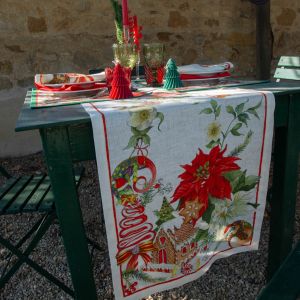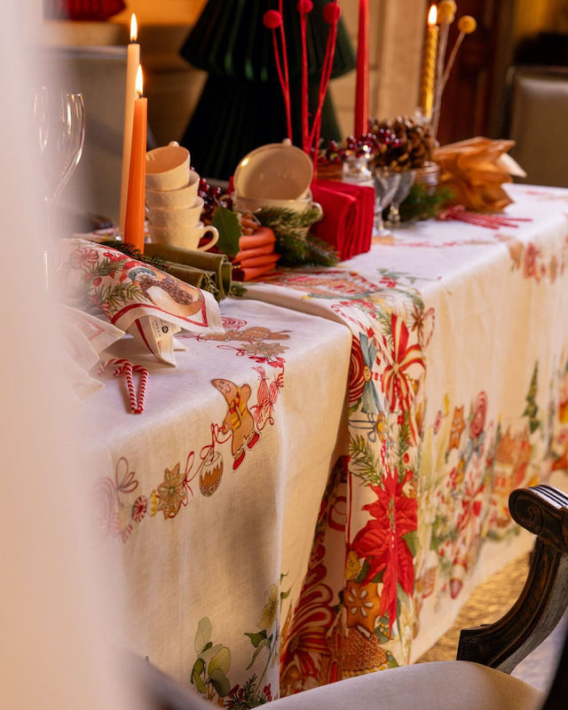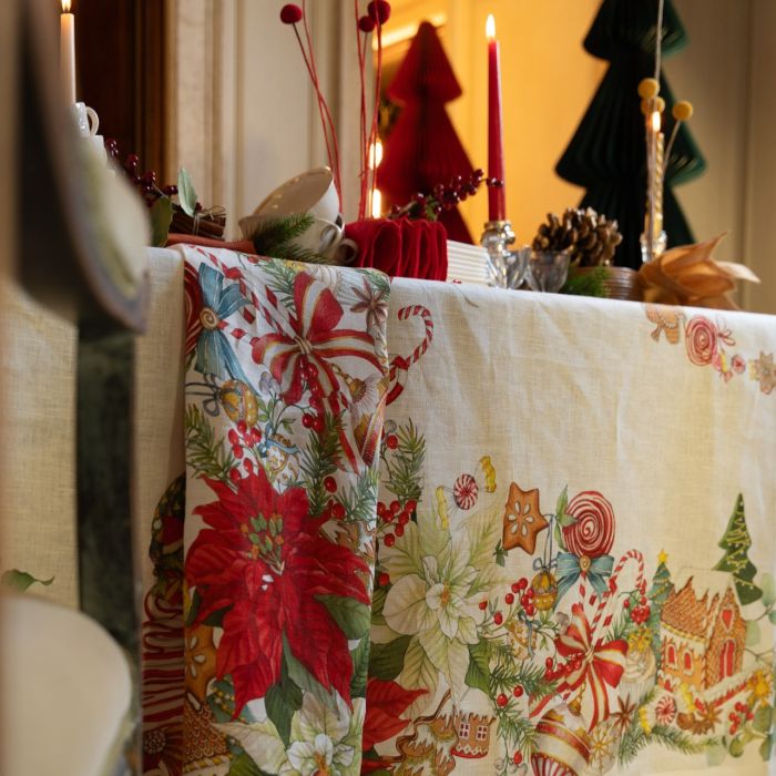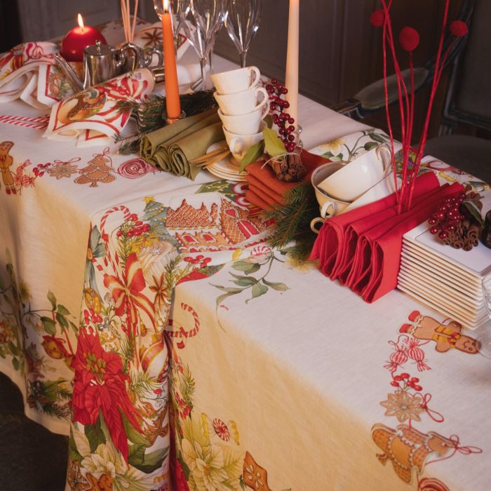 Tessitura Toscana Telerie is a wonderful linen company that makes all their products in Tuscany, Italy. Marzapepe Christmas Table Linens have a traditional gourmand appeal. The design consists of colorful and festive gingerbread creations. Printed on 100% linen. Engineered. Made in Italy.