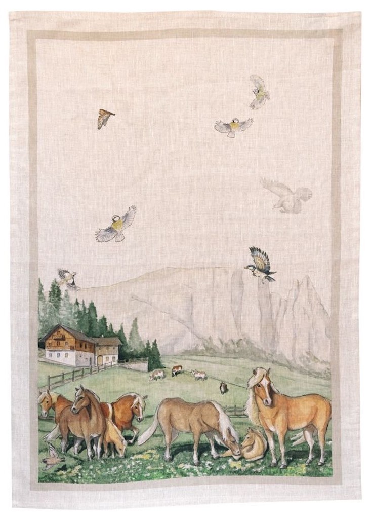 Tessitura Toscana Telerie is a wonderful linen company that makes all their products in Tuscany, Italy. Their kitchen towels are so pretty they could be wall art but strong enough for regular use. Maso Corda is no exception. The design is your everyday Italian farm life. Mountains, farm animals and the countryside are what makes this towel special. Use in your kitchen or place in your powder room as they are perfect as a hand towel. 100% linen, they're perfect for lint-free drying. Made in Italy.