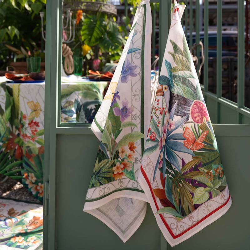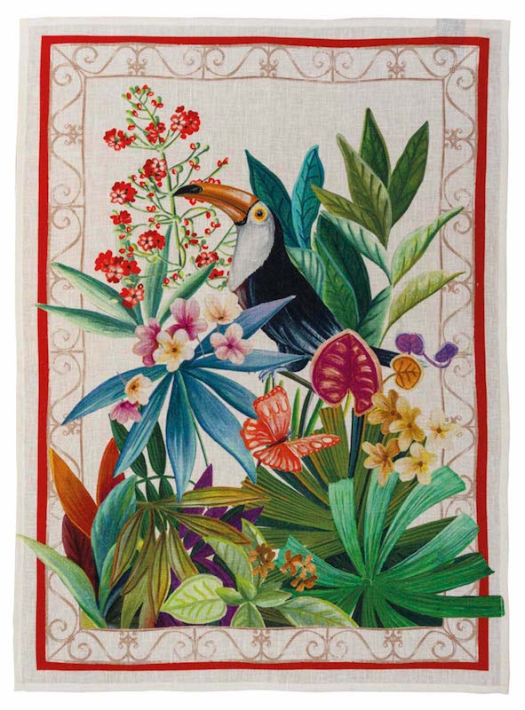 Tessitura Toscana Telerie is a wonderful linen company that makes all their products in Tuscany, Italy. Their kitchen towels are so pretty they could be wall art but strong enough for regular use. Naif Tucano has tropical flora and a hidden toucan playing peek a boo. It will add the perfect pop of color to your home. 100% linen, they're perfect for lint-free drying.