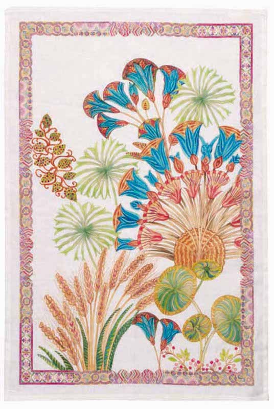 Tessitura Toscana Telerie is a wonderful linen company that makes all their products in Tuscany, Italy. Their kitchen towels are so pretty they could be wall art but strong enough for regular use. Papyro Blue is no exception. The design has plants and flowers from far away lands in all kinds of bright colors with a coordinating border. Use in your kitchen or place in your powder room as they are perfect as a hand towel. 100% linen, they're perfect for lint-free drying. Made in Italy.