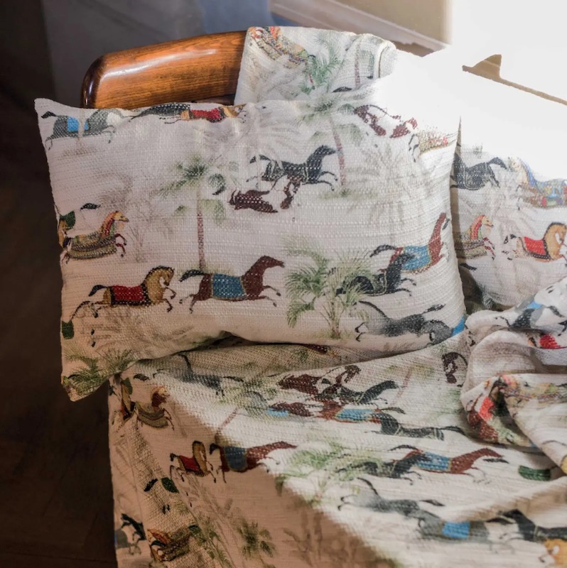 Tessitura Toscana Telerie is a wonderful linen company that makes all their products in Tuscany, Italy. Their throws are a joy to look at and so soft to the touch. Paseo has stunning horses in different colors from far away places. This throw will be a perfect pop of texture for any room. 100% stone washed cotton.