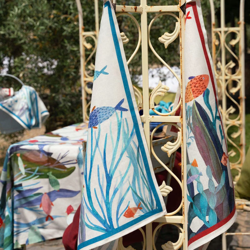 Born from the looms of Tuscany's Tessitura Toscana Telerie, the Poseidon Kitchen Towel in Turchese represents the intersection of heritage technique and contemporary design sensibility. Constructed from pure linen, this towel features an enchanting aquatic scene—fish, coral, and seaweed rendered in graceful composition—that transforms mundane kitchen moments into expressions of refined living. The artisan's unwavering commitment to superior craftsmanship ensures the piece serves simultaneously as a dependable utility and a thoughtfully curated design accent, ideal for those who recognize that exceptional textiles are fundamental to cultivating a distinguished home.