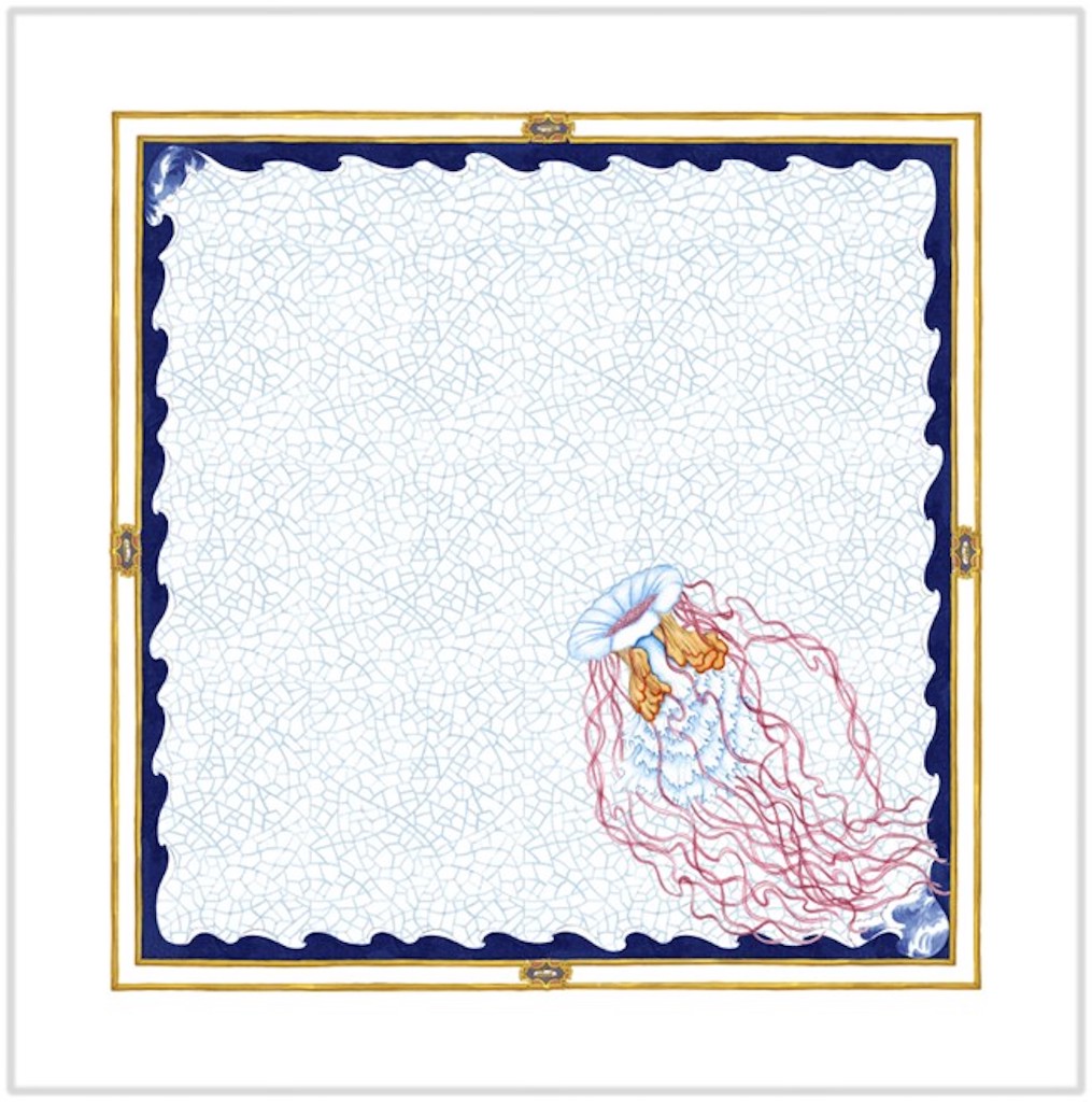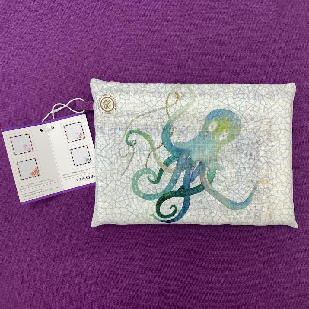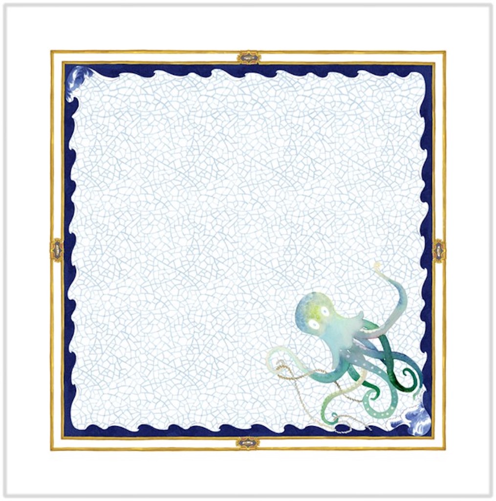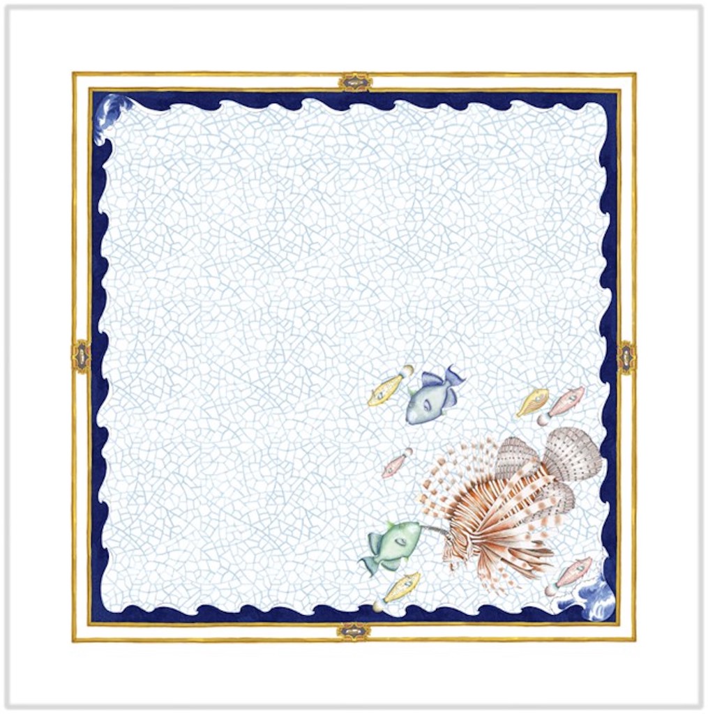 Tessitura Toscana Telerie Sottomarina Dinner Napkins are bright and captivating. Each four-piece set features 4 different subjects designed with the usual refinement, taste and artistic flair of Tessitura Toscana Telerie. In this set you will find a variety of sea animals with a nautical border. These napkins are for those who love beauty in everyday life. Simple hem with mitered corners. 100% linen. Made in Italy.