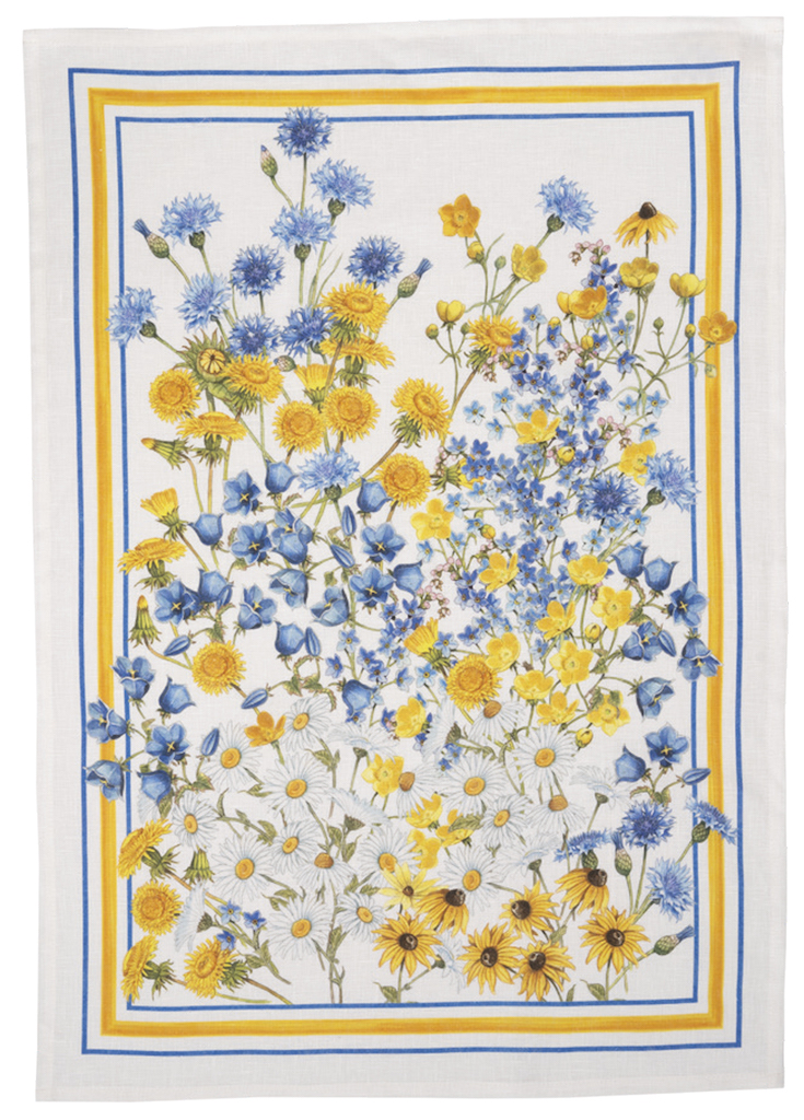 Tessitura Toscana Telerie is a wonderful linen company that makes all their products in Tuscany, Italy. Their kitchen towels are so pretty they could be wall art but strong enough for regular use. Sungarden Kitchen Towel is delightful and summery. The design has grand sunflowers, daisies and lots of other delicate flowers. The multi layered border with different colors makes it a beautiful show. It will add the perfect pop of color to your home. 100% linen, they're perfect for lint-free drying. Made in Italy.