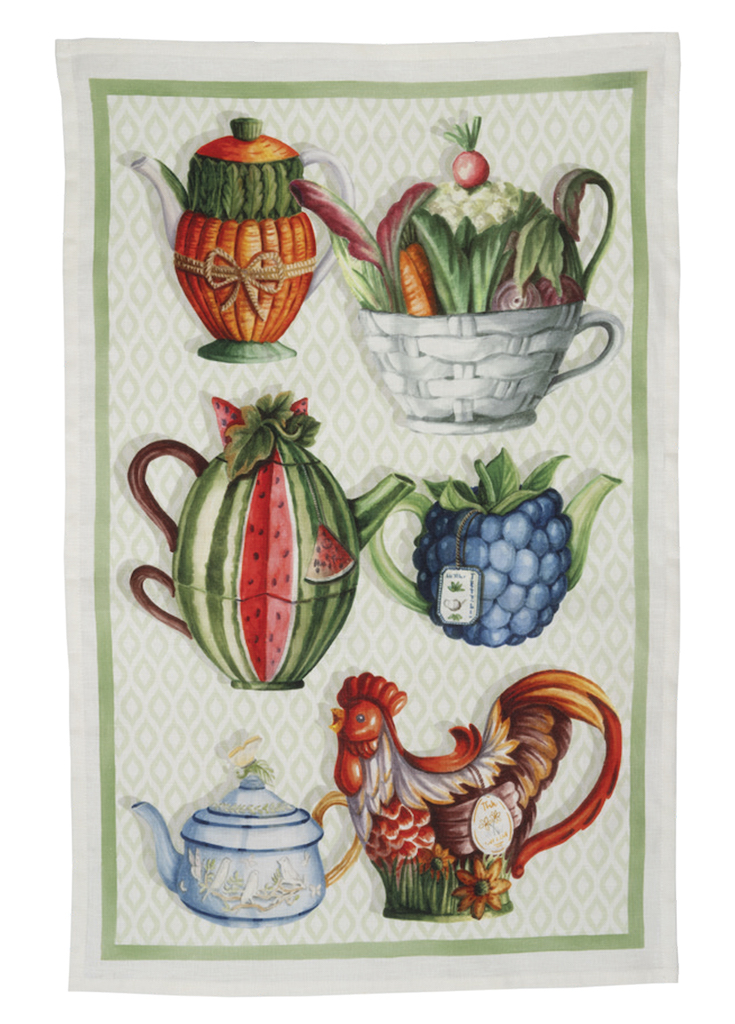 Tessitura Toscana Telerie is a wonderful linen company that makes all their products in Tuscany, Italy. Their kitchen towels are so pretty they could be wall art but strong enough for regular use. Teabreak Kitchen Towel is whimsical to say the least. The design is magical and quirky tea pots and tea cups. It will add the perfect pop of color to your home. 100% linen, they're perfect for lint-free drying. Made in Italy.