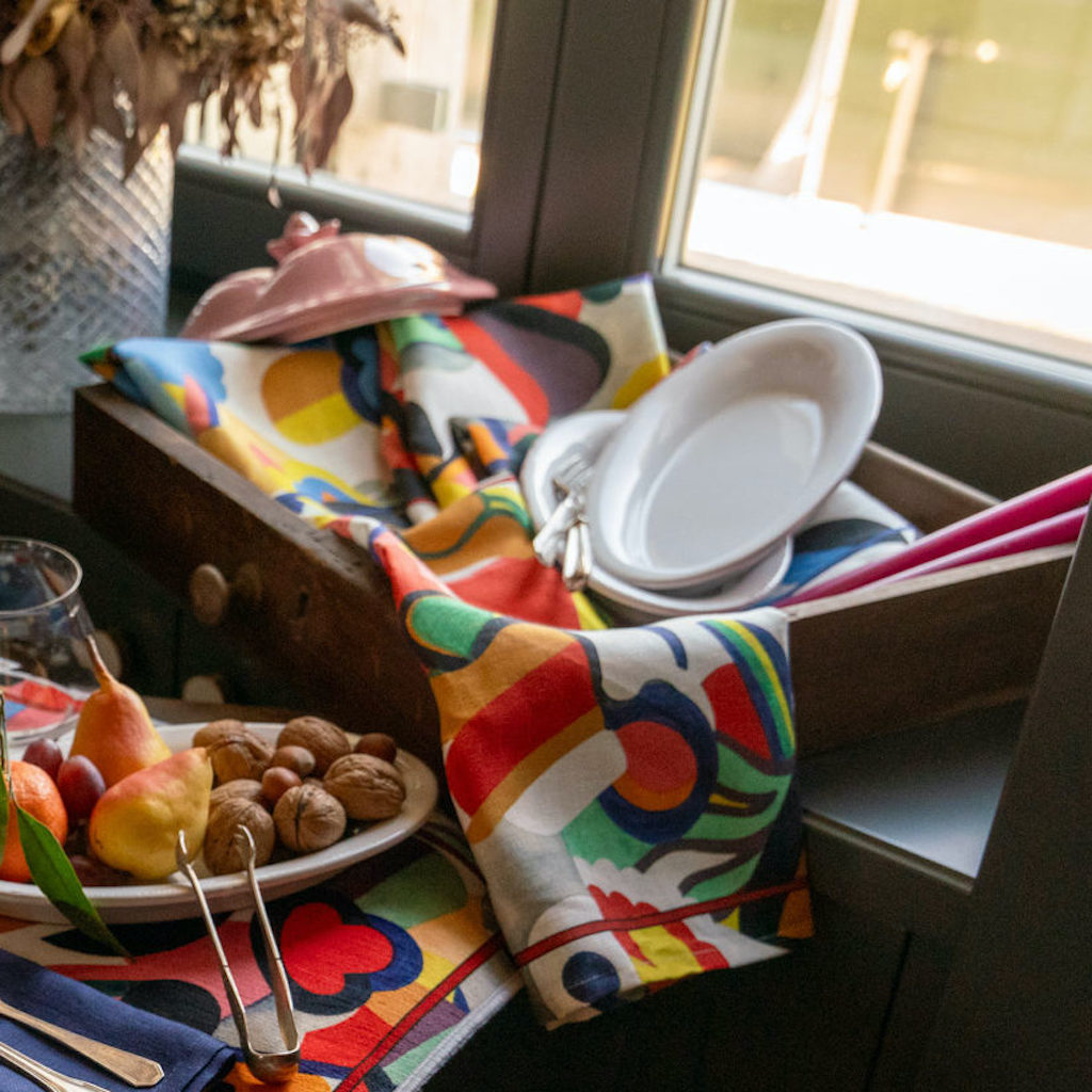 Tessitura Toscana Telerie is a wonderful linen company that makes all their products in Tuscany, Italy. Their kitchen towels are so pretty they could be wall art but strong enough for regular use. Tetris Rosso is no exception. The design is artistic and colorful. What is unique about Tetris is that the design spills over the border. Use in your kitchen or place in your powder room as they are perfect as a hand towel. 100% linen, they're perfect for lint-free drying. Made in Italy.