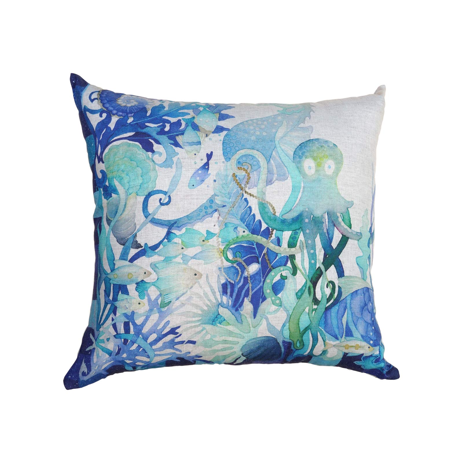 Tessitura Toscana Telerie is a wonderful linen company that designs and manufacturers all their products in Tuscany, Italy. Their decorative pillows are just stunning. Tortuga is a beautiful pillow in all shades of blue showing you how beautiful our under water world is. All sorts of treasures can be seen. 100% linen.