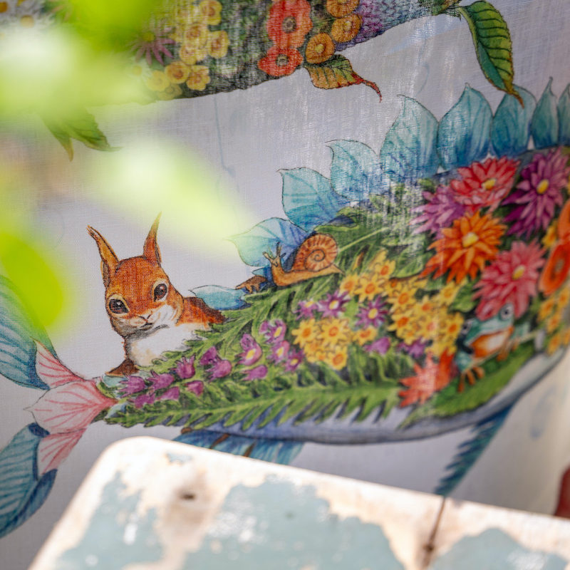 Tessitura Toscana Telerie is a wonderful linen company that makes all their products in Tuscany, Italy. Pesciflora is magical. The design has enchanted fish made up of forest creatures and flowers in gorgeous colors. Works with formal china or can be scaled down to a casual look. Runners are engineered. Tablecloth have self hem finish and mitered corners. Printed on 100% linen.