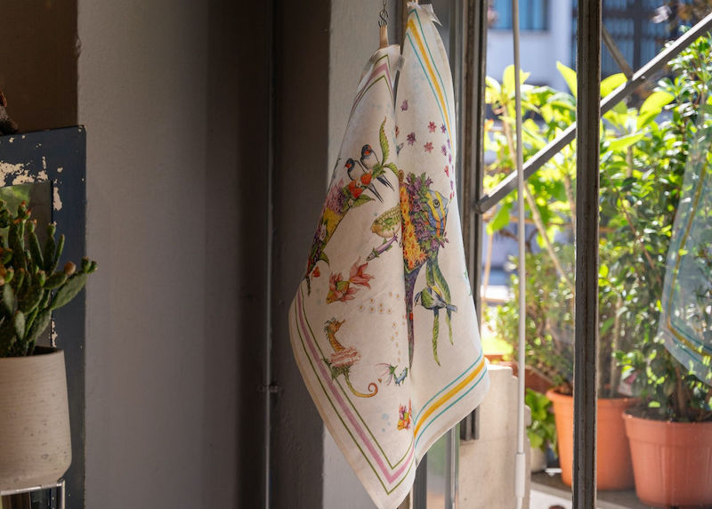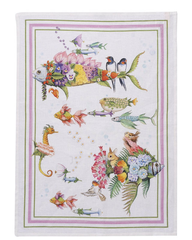 Tessitura Toscana Telerie is a wonderful linen company that makes all their products in Tuscany, Italy. Pesciflora is designed to showcase fish made out of beautiful flowers.Their kitchen towels are so pretty they could be wall art but strong enough for regular use. Use in your kitchen or place in your powder room as they are perfect as a hand towel. 100% linen, they're perfect for lint-free drying. Made in Italy.