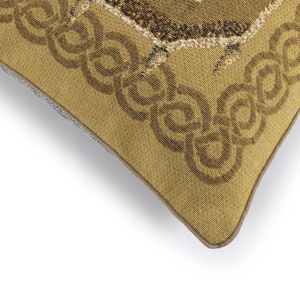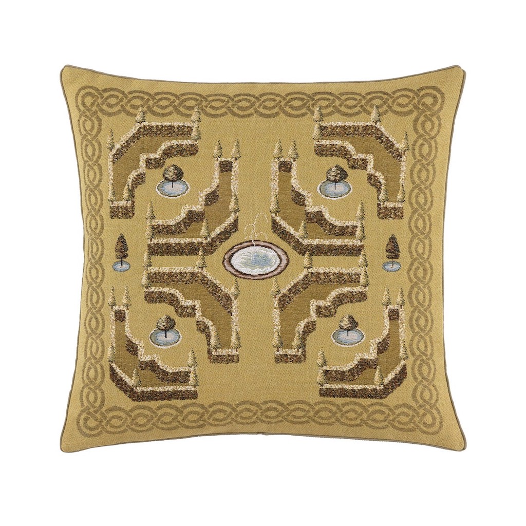 Yves Delorme's À la Française decorative pillow in Mordore combines art and refinement, inspired by the splendor of French gardens. The tapestry's front panel finely depicts the symmetrical patterns and ordering characteristic of French gardens, inviting nature and its elegance into your living space. The back of the cushion cover features a two-tone chevron pattern, synonymous with modernity and sophistication. Tapestry front. Two-tone chevron pattern on back. Piping finish. Bottom zipper fastening. Composition: 74% Cotton, 12% Acrylic, 6% Polyamide, 5% Polyester, 3% Viscose. Back: 61% Cotton, 39% Polyester. Cotton tapestry designed in France and made in their partner workshops in Belgium.