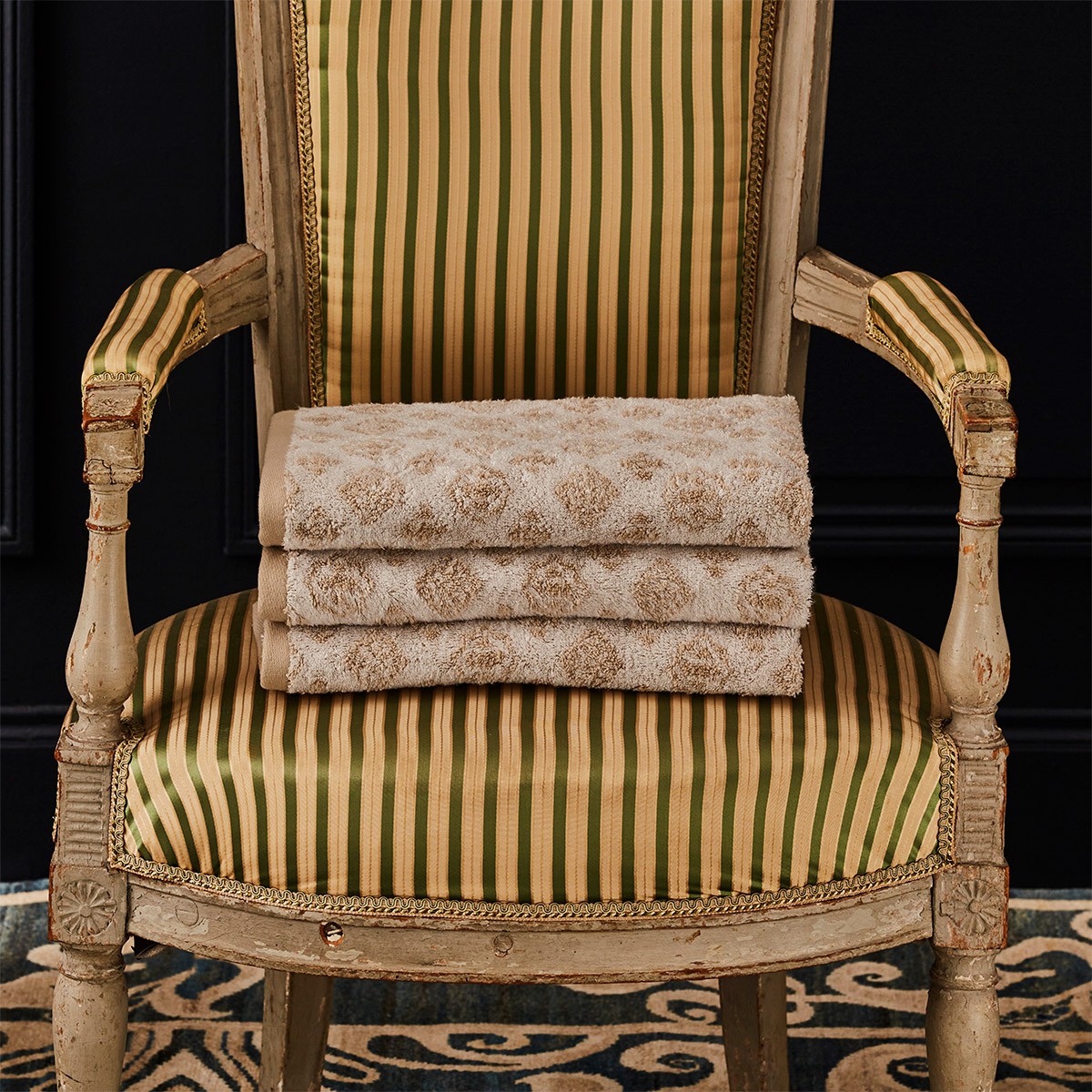 Yves Delorme's Allure Bath Collection is a two color dyed jacquard towel. 65% organic cotton and 35% modal, 550 gsm. Border finish. Article certified STANDARD 100 by OEKO-TEX. Made with care in France.
