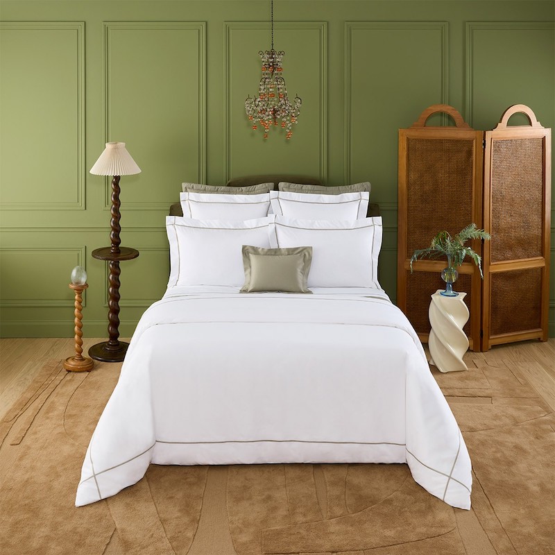 Yves Delorme's version of luxury hotel sheeting, Athena in Kaki was quick to become a staff
