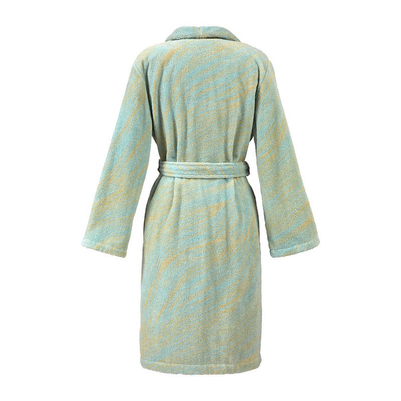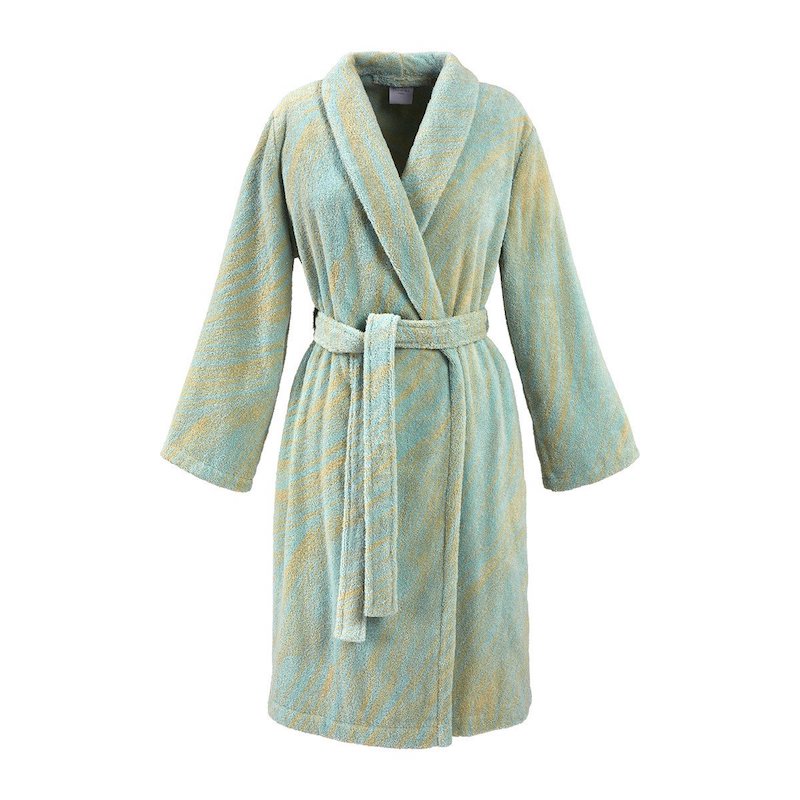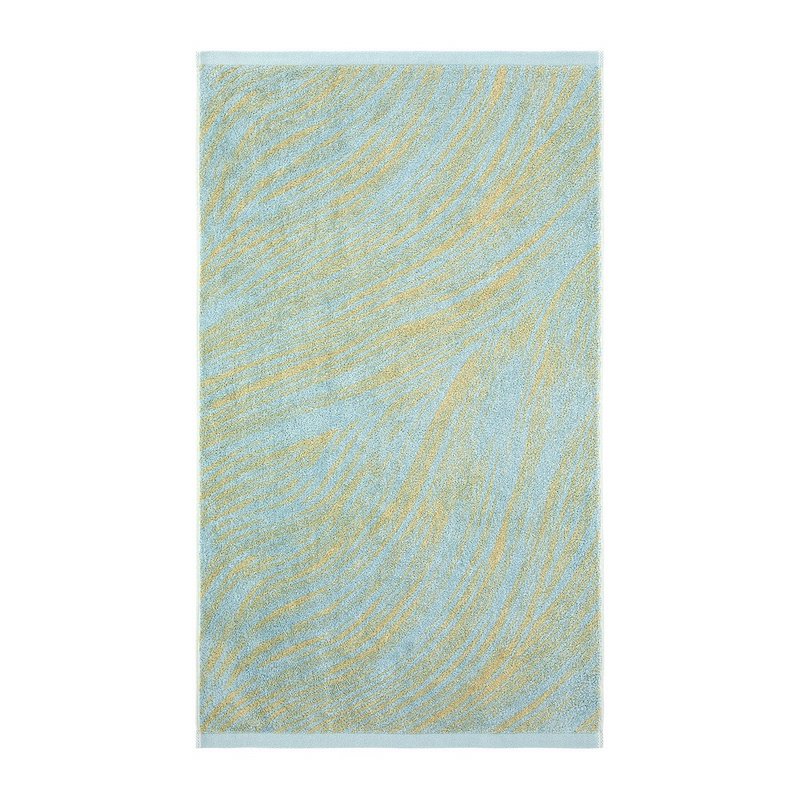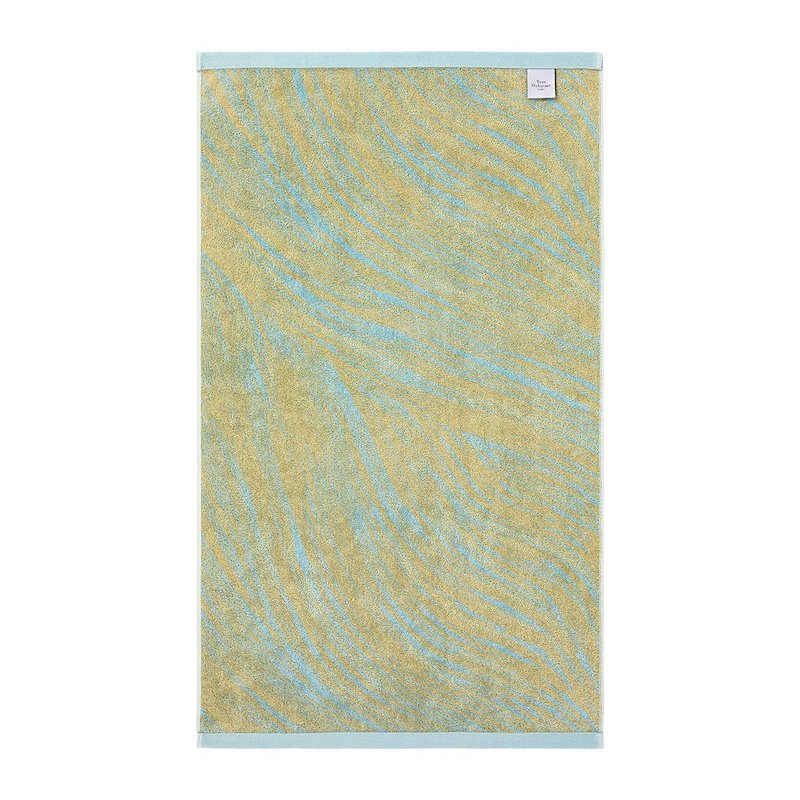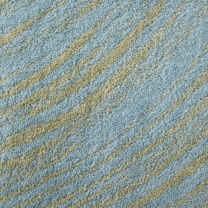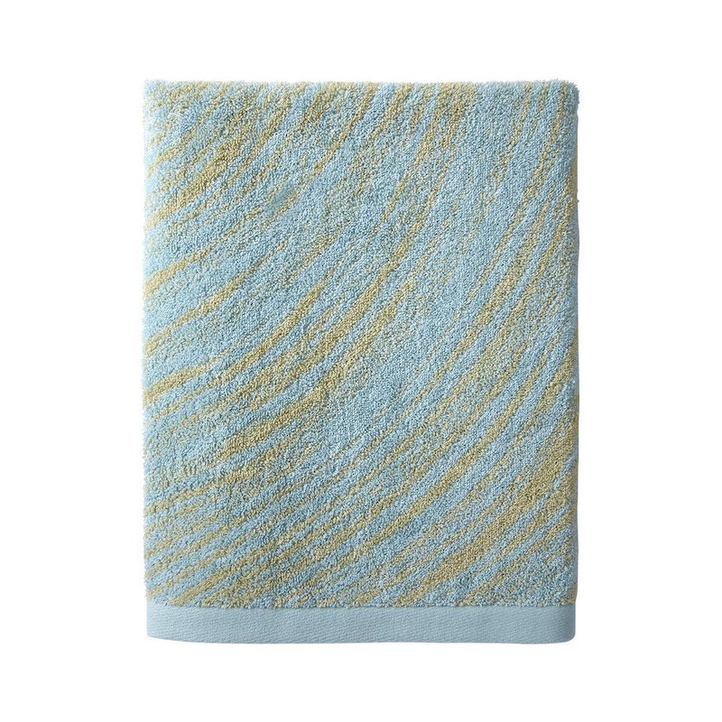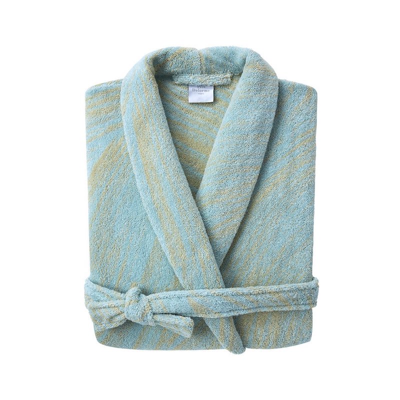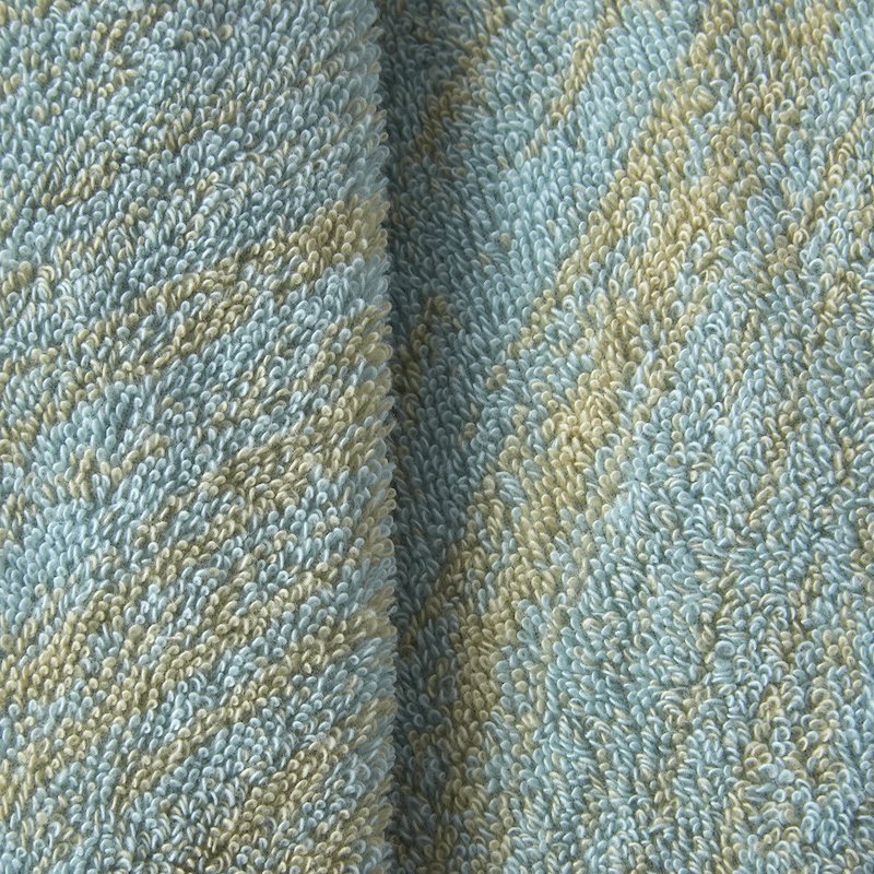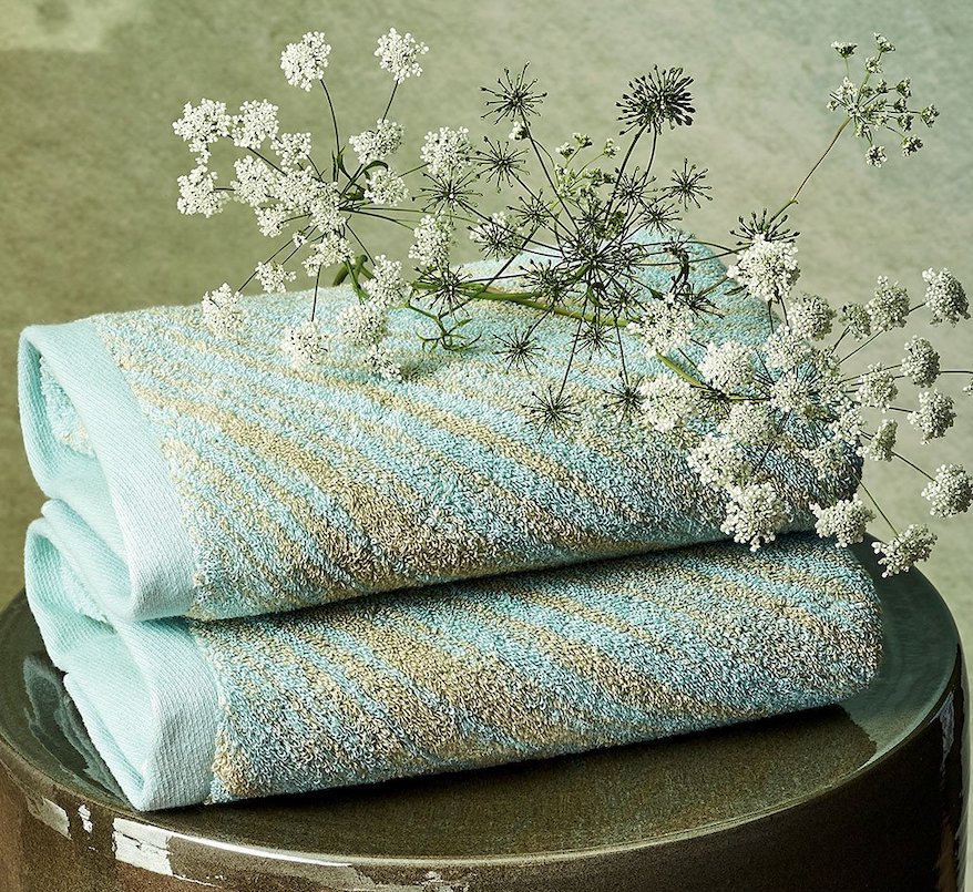 Yves Delorme's Au Loin Bath Collection like its bedding collection have sweeping turquoise waves over golden sand.  Jacquard with a serge border finish. 100% organic cotton terry.  Made in France.