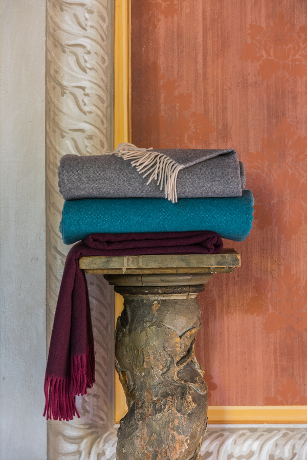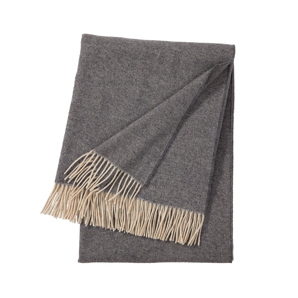 wo shades of threads that create a caviar effect from each variation. Throw, fringe finish. 51” x 67”. Made in Lithuania