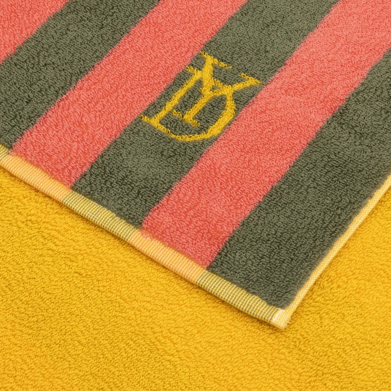 Yves Delorme's Corail beach towel has a sunny spirit and vibrant hues that bring the beach to life with radiance. Designed as a chic and durable accessory, the Corail beach towel combines comfort, quality, and style for your sun-soaked moments of relaxation. Corail stands out for its generous weight and soft touch. Its colorful pattern celebrates summer elegance with a contemporary, graphic flair. Made in France from organically grown cotton jacquard.
