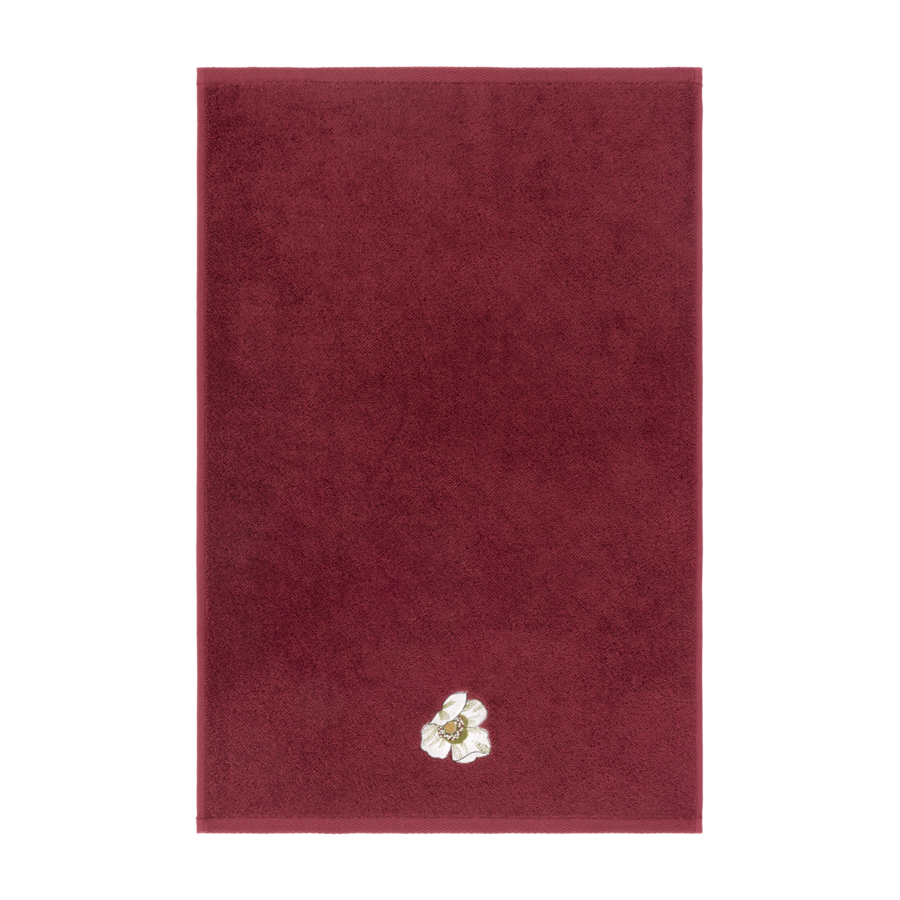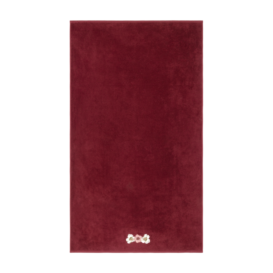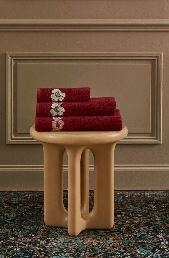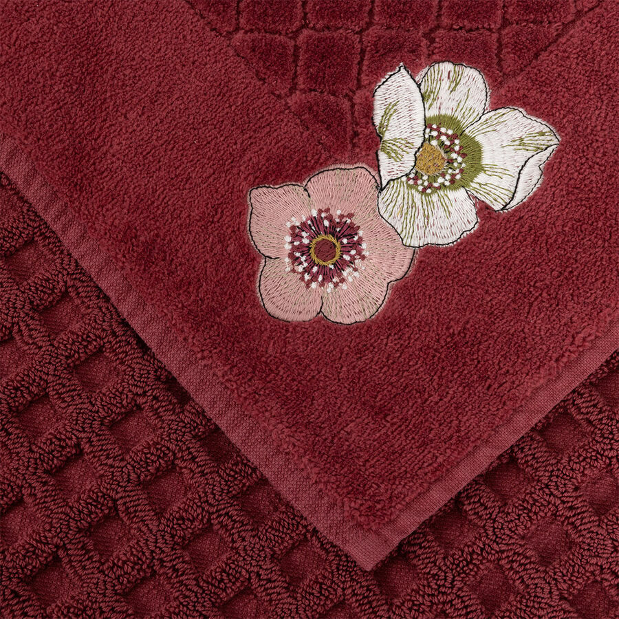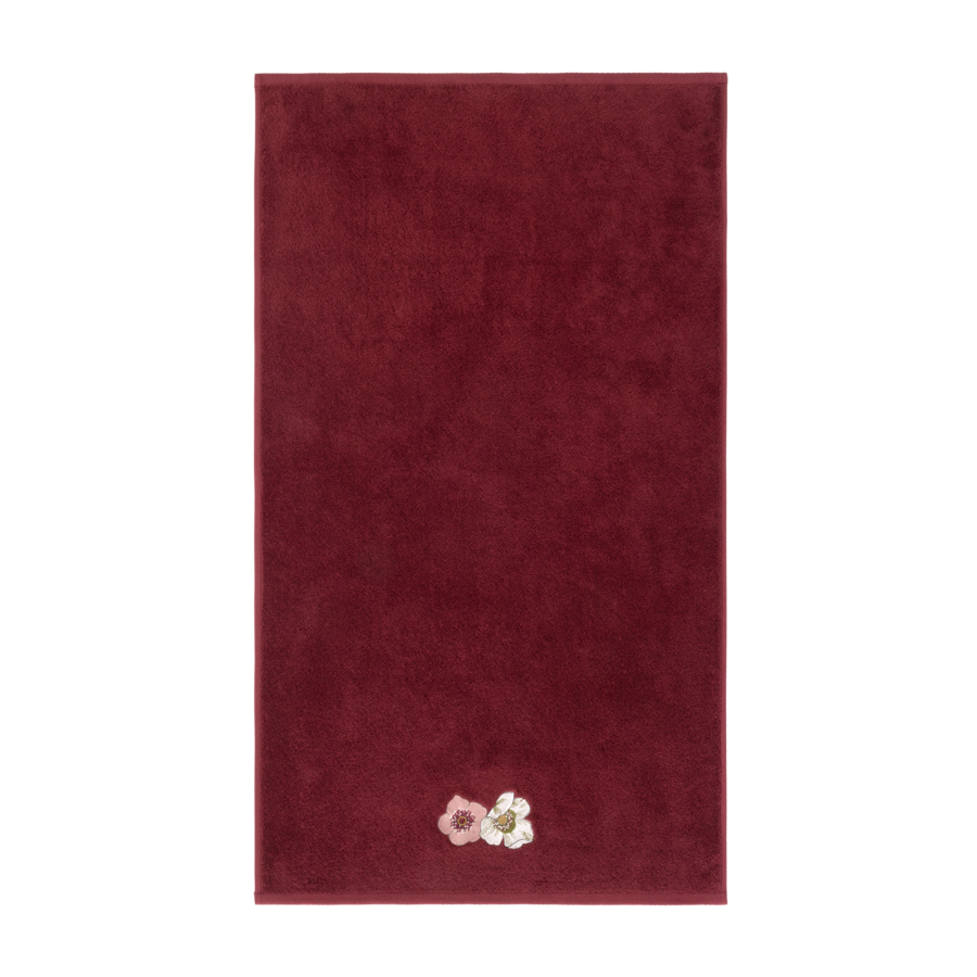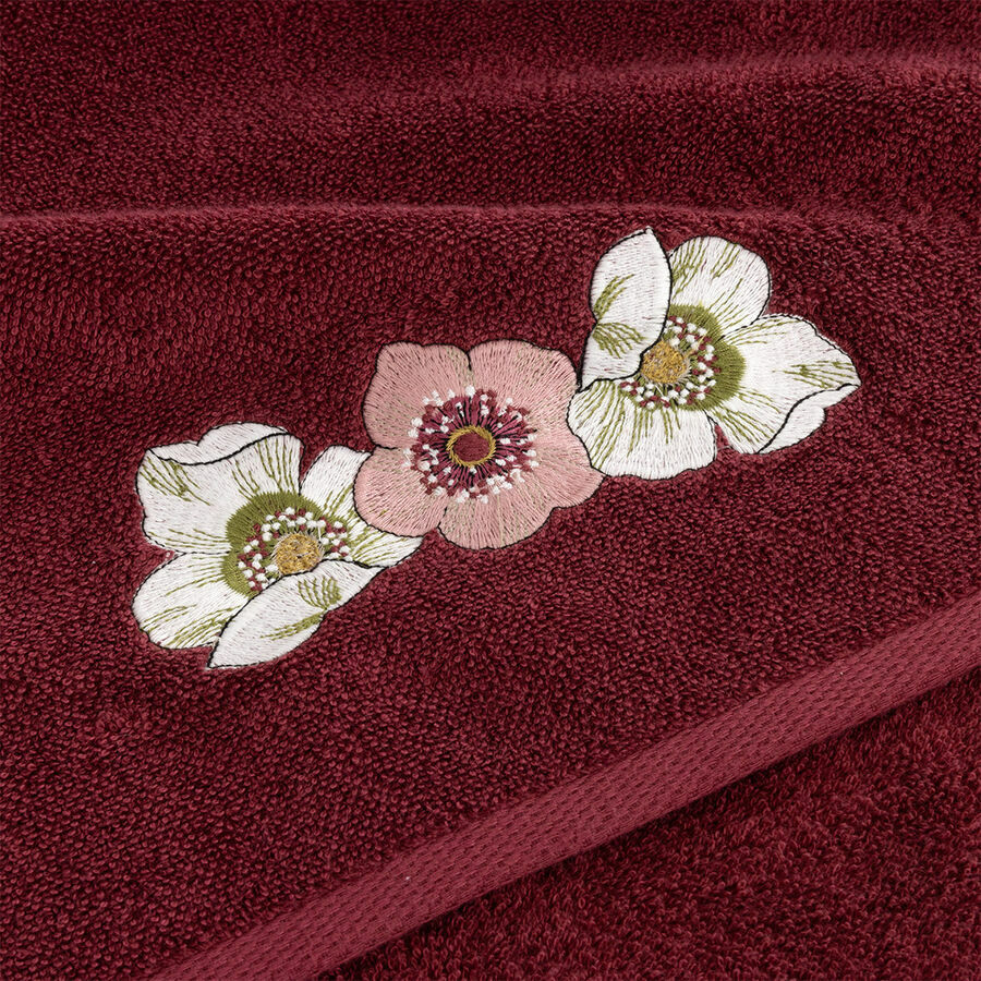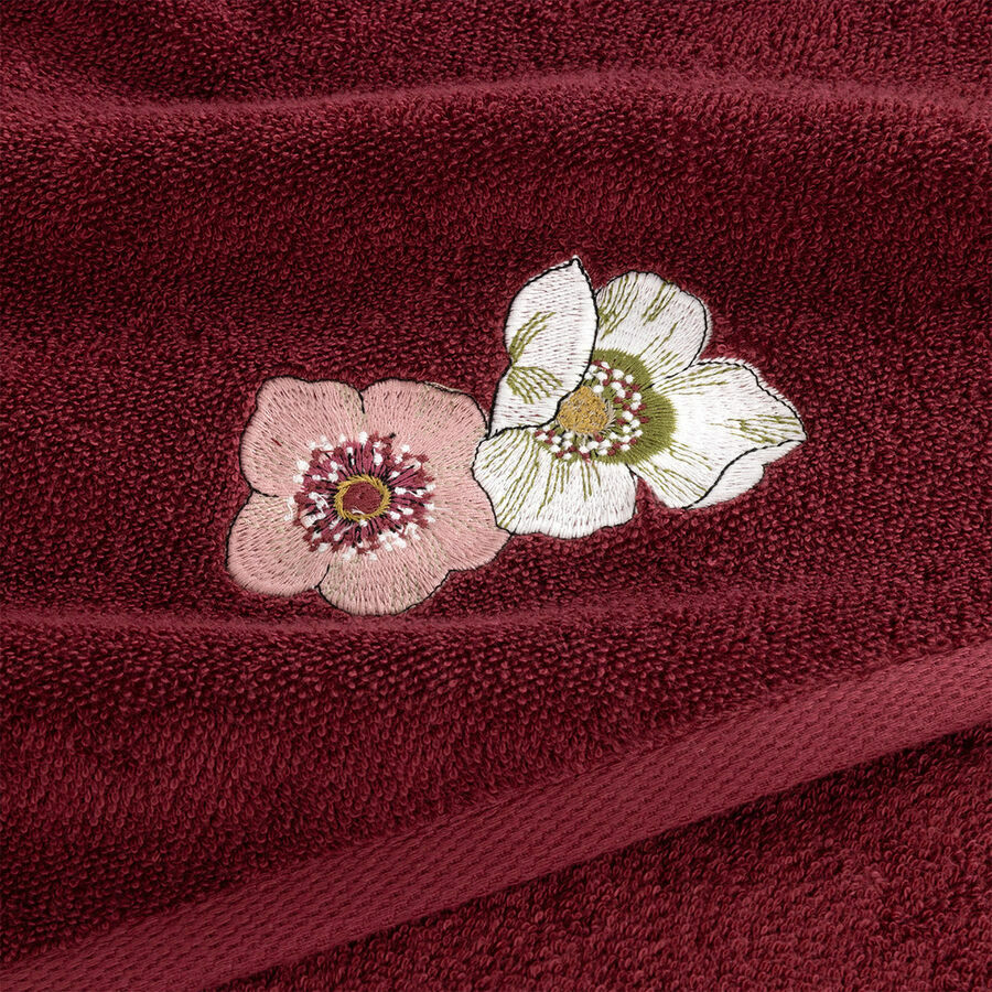 Solid terry towels with embroidered flowers, different by size.