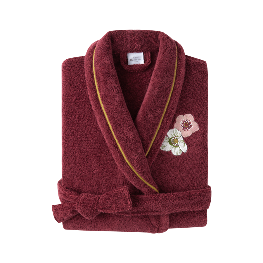 Yves Delorme's Corolles Shawl Collar Bathrobes stand out with their soft, enveloping texture, enhanced by delicate embroidery that brings a touch of elegance to your bathroom.Crafted from organic cotton terry and enriched with modal, it offers the perfect balance of plushness, absorbency, and skin-soft comfort—while maintaining its suppleness wash after wash. 83% organic cotton, 17% modal, 450 gsm. Made in Turkey.