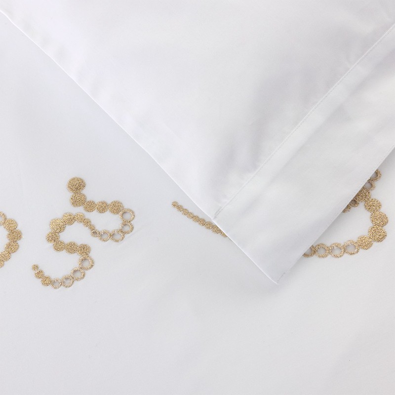 Ballet is part of the Yves Delorme Couture collection. To aid memorize his steps, King Louis XIV requested that his Ballet Master draw them. Inspired and whimsical, this dotted embroidery replays the King’s dance steps in a stunning ballet. Sophisticated finishes, all made in our sewing facility in France include: Placed embroidery recto-verso, 2’’ flounce finish for duvet cover and shams. Duvet cover features button closure. Shams feature envelope closure. Sateen, 100% PIMA cotton, 500 thread count. Yves Delorme collaborates with exceptional craftsmen: this model is tailored in our Yves Delorme COUTURE sewing facilities in France.