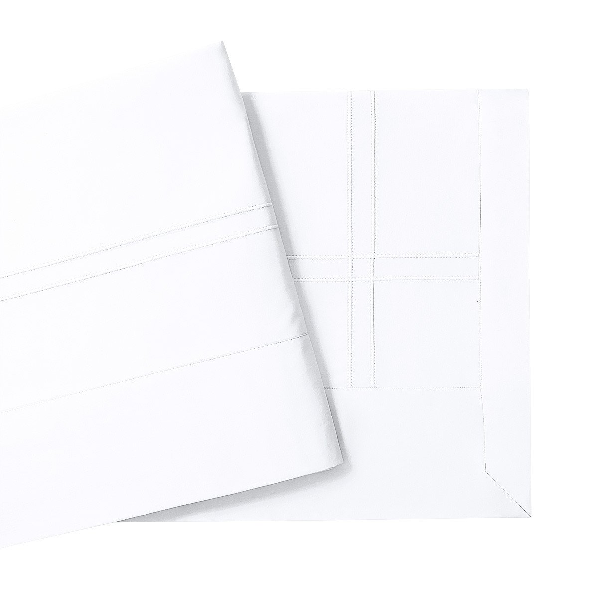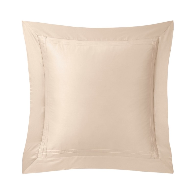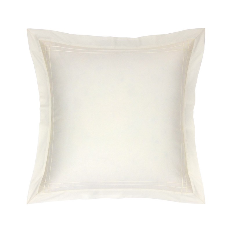 sellier finish. The point sellier finish is similar to Triomphe -- only a double row of stitching throughout. Reversible flange finish, hand guided saddle stitch. Shams sold in singles, features envelope closure. Pillowcases sold in singles. Duvet Cover has button closure along the bottom. Fitted Sheet is elasticized with 18" deep pockets. 100% Supima long staple combed cotton sateen, 500 thread count. Made with care in France.