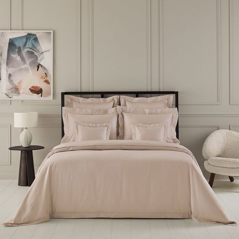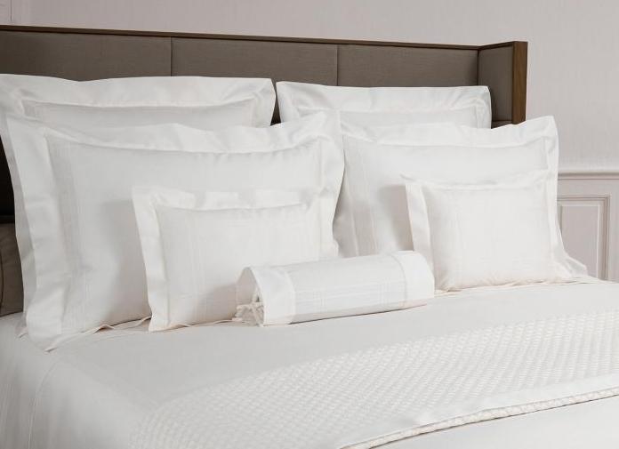 Adagio, part of the Yves Delorme Couture collection, coordinates with the quilt of the same name. Luxury long-staple, Combed Cotton Sateen, 500 thread count, with a point