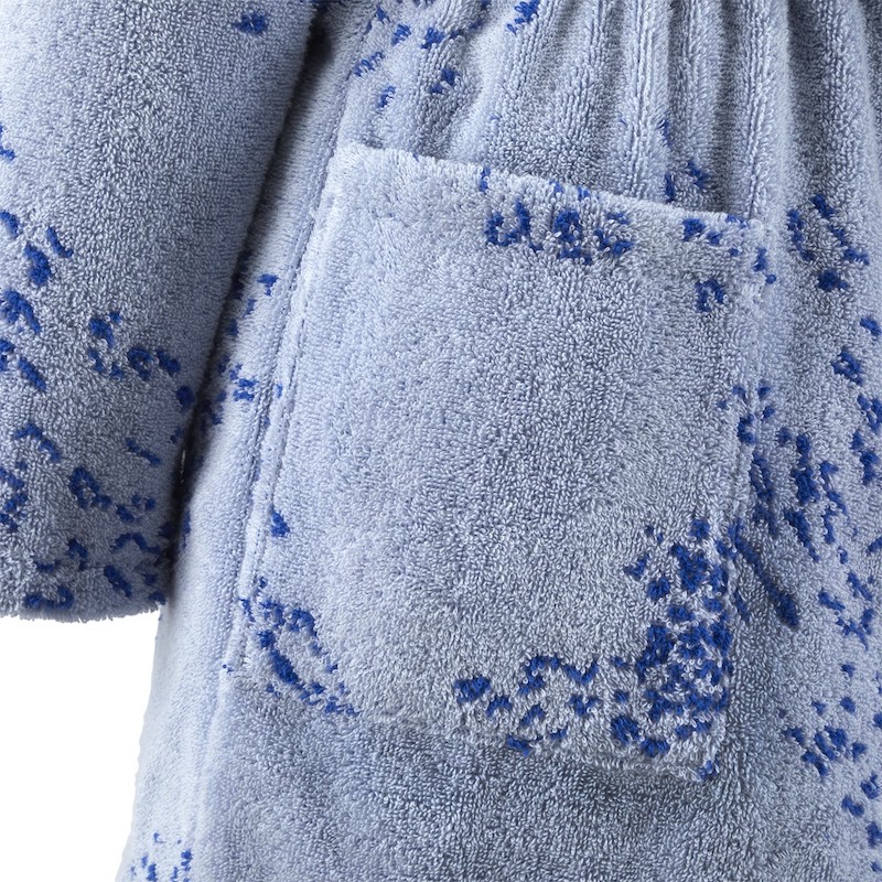 Designed by Yves Delorme, the Écumes Bath Robe captures the essence of water's gentle movement through its understated jacquard pattern, creating a serene visual experience. Crafted from 100% organic cotton at 470 gsm, this kimono-style robe offers substantial comfort and breathability. The graphic jacquard weave is enhanced by a refined border trim, while practical pockets and an adjustable belt provide both functionality and ease. An investment piece that marries sophisticated design with everyday wearability, perfect for those who appreciate quality textiles and mindful design.