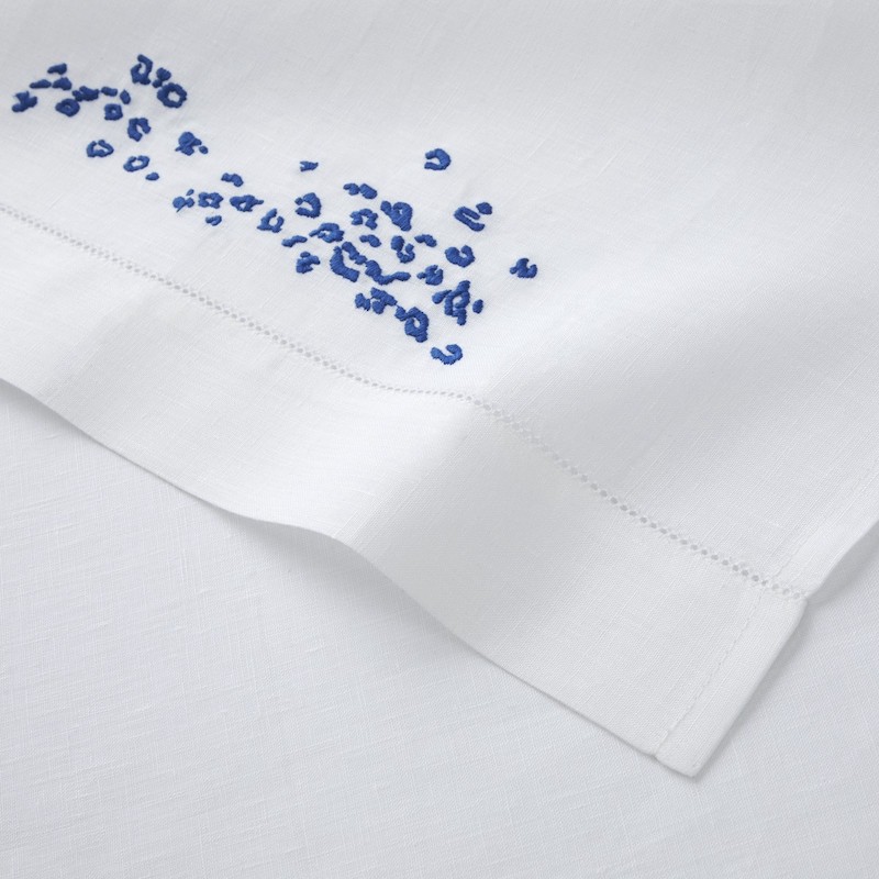 Drawing from the poetic imagery of coastal landscapes, the Écumes Guest Towel Set features delicate placed embroidery that interprets the fluid patterns of marine movement. Woven entirely from 100% linen, these towels showcase the material's inherent nobility, offering a lightweight yet remarkably durable option for discerning households. The water-inspired motif is complemented by a refined picot finish that adds subtle textural interest. Crafted in Italy with meticulous attention to detail, this set of two represents an elegant choice for guests or personal use, combining artistic sensibility with practical sophistication.