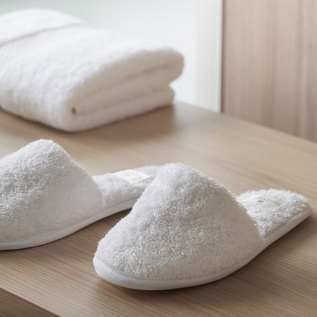 Yves Delorme's Etoile Slippers are pure bliss.  Crafted from a blend of fine, luxurious long-staple cotton and natural modal, the Etoile collection offers extra softness, durability, and absorbency to dry faster than pure cotton towels.  Slippers sold with pouch.