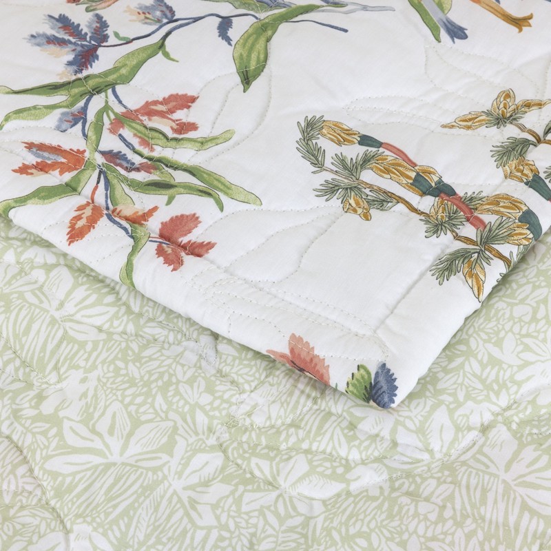 Quilted Coverlet brings botanical elegance to your bedroom. This expertly crafted coverlet features a delicate interplay of foliage and branches rendered in calming tones. Constructed from 100% organic long-staple combed cotton with a lightweight batiste weave, it delivers exceptional softness and breathability. The 200-thread-count percale fabric ensures durability while maintaining a fluid drape. Decorative floral pattern quilting adds visual interest, while the 1-inch hem finish provides a refined edge. Polyester filling offers gentle warmth without excess weight. Thoughtfully made in Tunisia using premium organic materials.