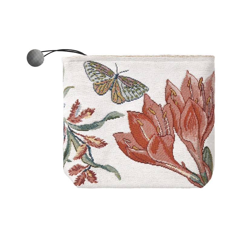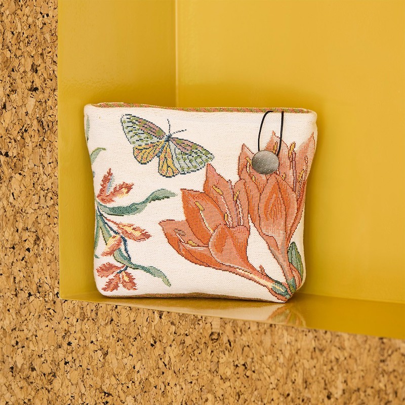 Crafted in Belgium, the Ezio Tote in Craie showcases a sophisticated jacquard tapestry weave inspired by the lush gardens of the French Riviera. The carefully composed fiber blend—74% cotton, 11% acrylic, 6% polyamide, 6% polyester, and 3% viscose—delivers an ideal balance of softness, structure, and visual depth. A 100% linen interior lining provides natural breathability and refined finishing. The botanical design, rendered in intricate tapestry technique, captures the essence of Mediterranean flora with artistic precision. Secured by a metal zipper, this tote merges functional elegance with distinctive craftsmanship.