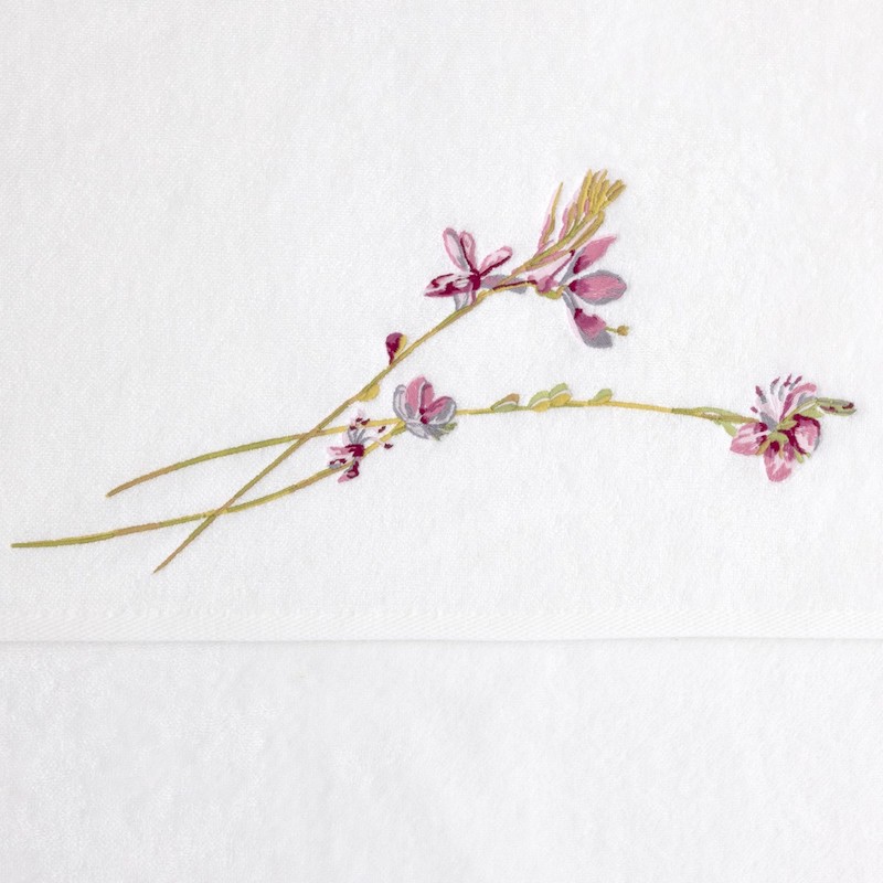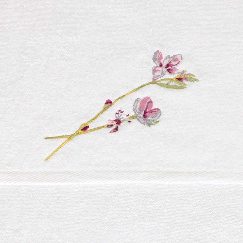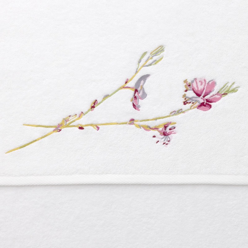 The Gaura Bath Collection from Yves Delorme captures botanical grace through its refined design, where delicate stems and flowing leaves create a sophisticated visual narrative. Crafted from a premium blend of 83% organically grown cotton and 17% modal, this collection delivers exceptional softness paired with lasting durability. At 450 g/m, the substantial weight ensures superior absorbency and a luxurious feel against the skin. Each piece features artfully rendered floral embroidery that varies subtly across different sizes, adding an understated elegance to your bath space.