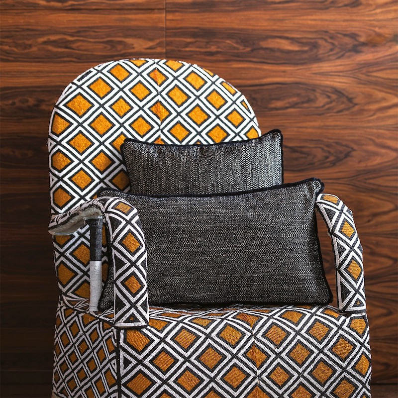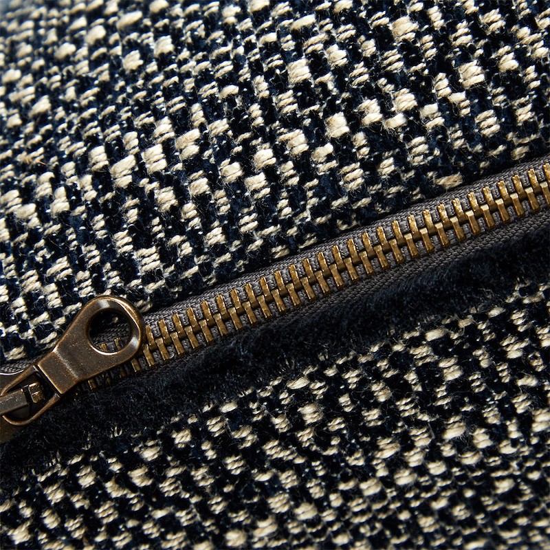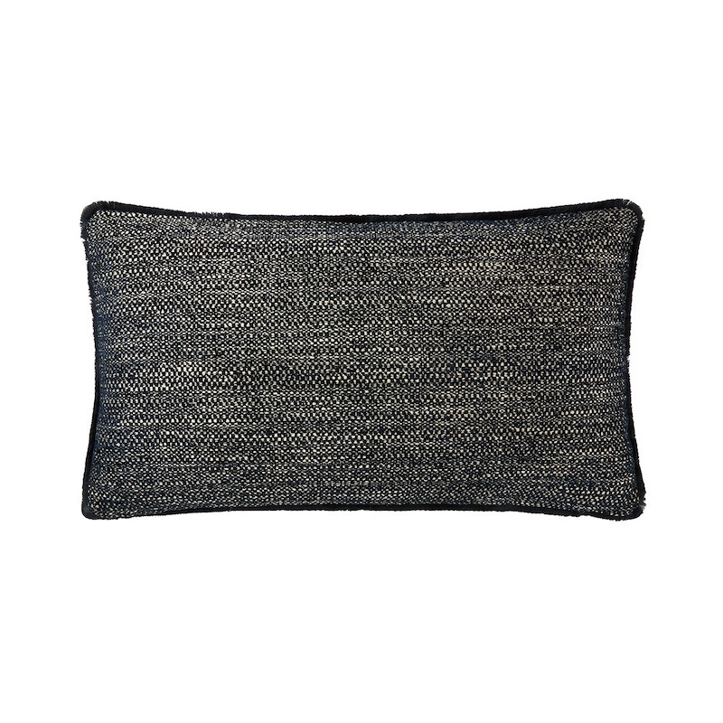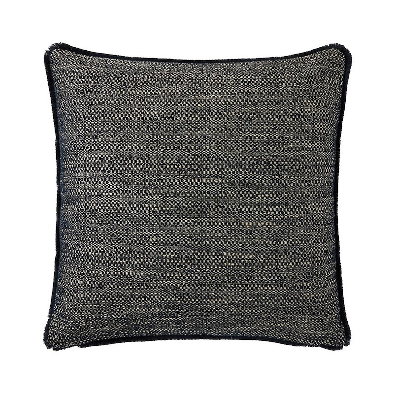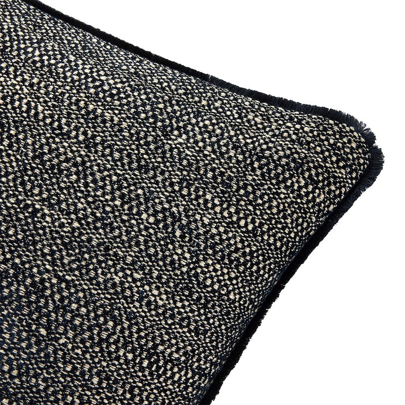 Yves Delorme's Geode Iosis Decorative Pillow in Nuit has a fine Italian chenille weave. It is available in various solid colors of various shades and a matching short fringe. Woven in Italy. Geode is textured on front and back. Fringe finish and zipper closure at the bottom of the cushion cover. 40% Acrylic, 28% Cotton, 27% Viscose, 5% Linen. Made in Italy