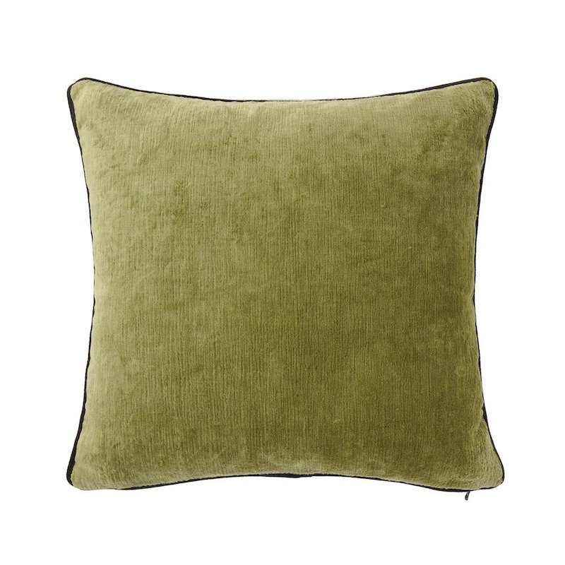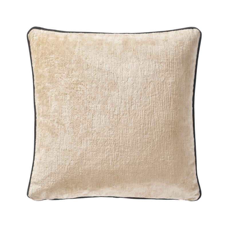 Iosis' Boromee pillows are in rich bright shades with non traditional and matte appearance. These generous linen velvet pillows are in bright colors and highlighted with a dark velvet piping. Solid velour front, reversing to a solid linen back, piped finish, zipper closure. Down and feather insert is included. Linen Velour.