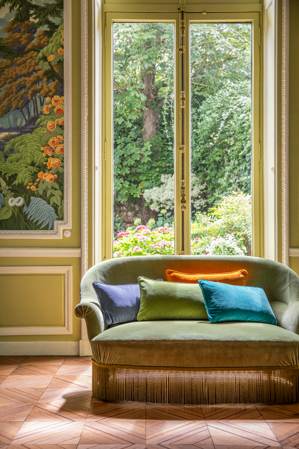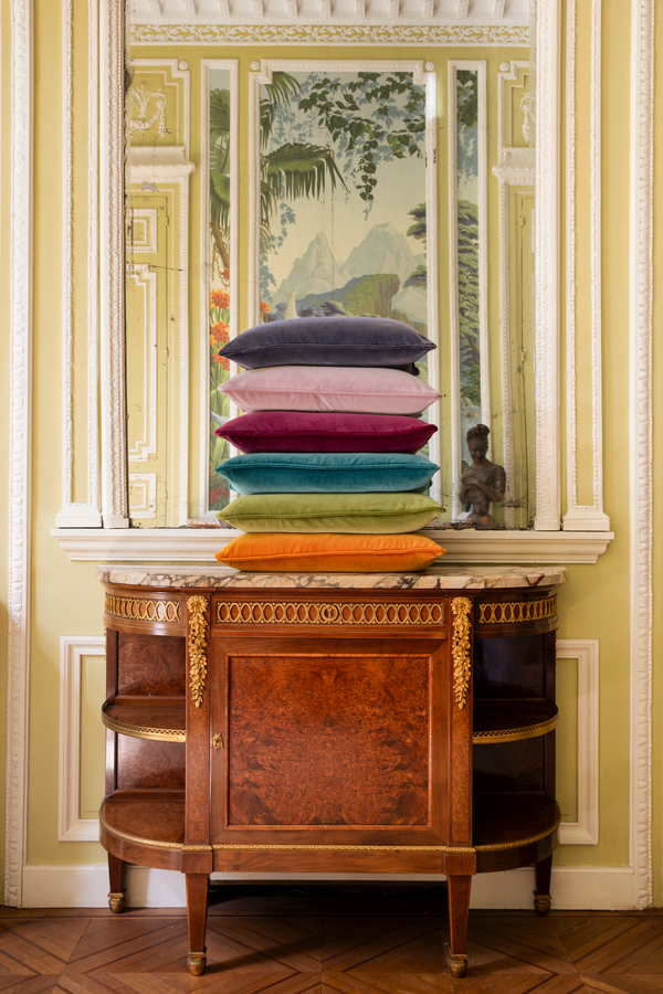Iosis' Divan Decorative Pillows are part of brand new family of cotton velour cushions from Iosis. An ultra-matt velour of high quality. Fifteen subtle shades form a spectrum to be mixed and matched. A tone-on-tone piped finish adorns the contour of the cushions. Tone-on-tone piped finish. Down & feather insert included and may ship separately. Front and back in 100% solid cotton velour woven in Italy.