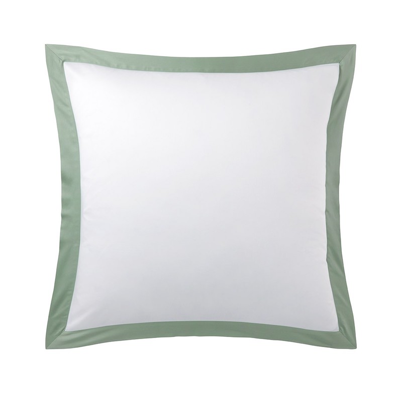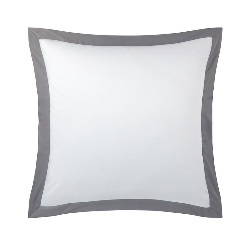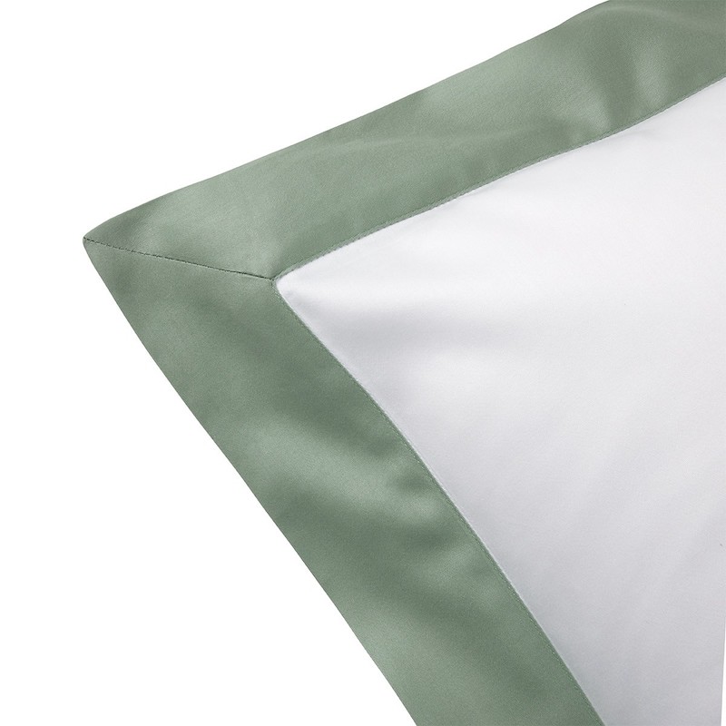 Yves Delorme Linea has appliqué bands on white cotton sateen. This new, timeless design offers a soft and plush touch of cotton sateen combined with the natural and refined colors Sateen bed linens. Duvet cover with colored sateen appliqué in U shape - button finish, flat sheet with 2” hem in colored sateen, shams with 2" flounce in colored sateen. 100% long staple combed organic cotton from organic farming, 300 thread count. Made in France.