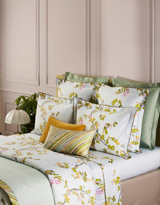 Flat sheet in coordinating design, 4-inch applied border, bias finish.