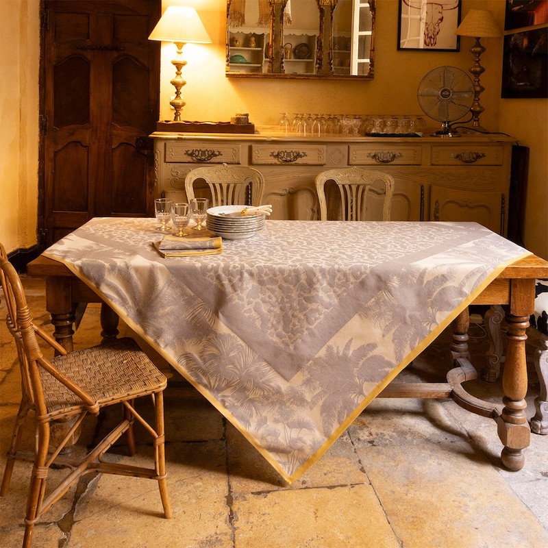 Woven in France from a jacquard blend of cotton and linen, this tablecloth combines the softness of cotton with the natural hold of linen. The finesse of the weave underlines the richness of the design, while the meticulous finish guarantees a perfect fall, for a table that's both elegant and effortless.